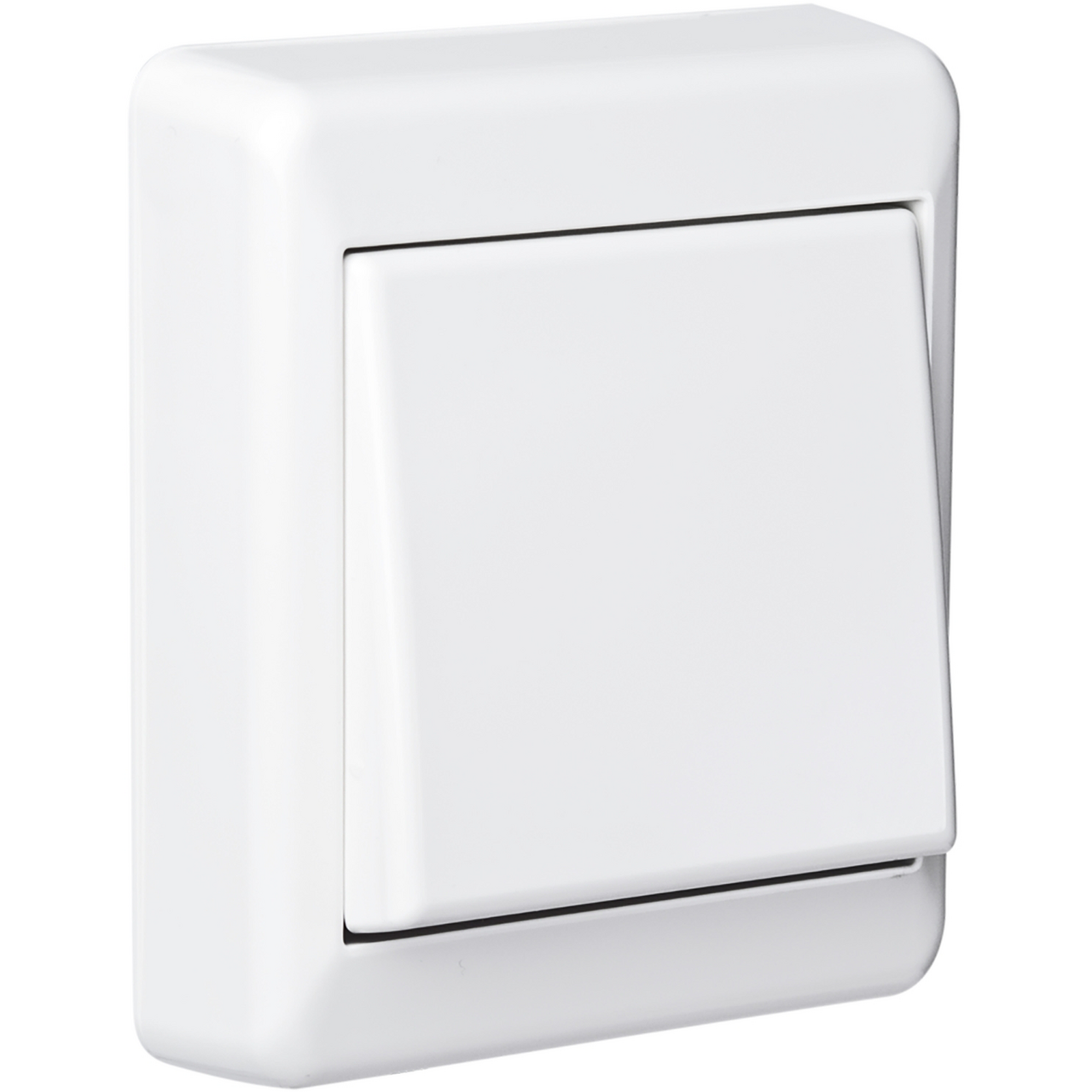 RS Renhvit påveggsbryter med skrutilkobling. Bryteren er en vekselvender.