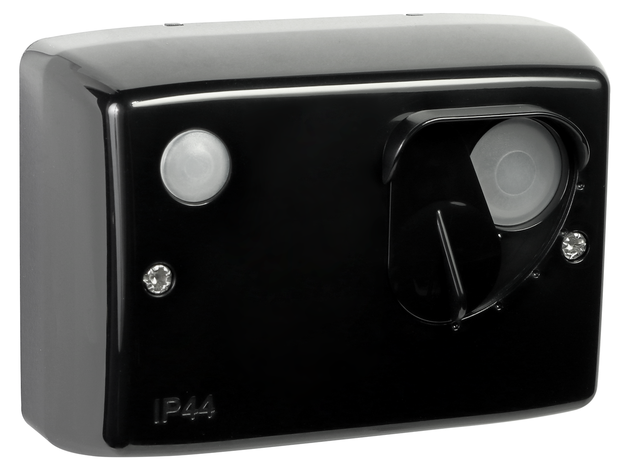 Fotocelle FC10A IP44 har mekanisk følsomhetsjustering i lokket, lysdiode som indikerer på/av og testknapp. Testen har 30 sekunders forsinkelse så det er tid til å forlate installasjonsstedet for å kontrollere funksjonen. Konstruksjonen gjør at sprutsikkerhet opprettholdes uten bruk av nipler og pakninger ved kabelinnføring. Maks last er 10A. Fotocellen har vanlige svekkinger for rørinnføring i bakplate