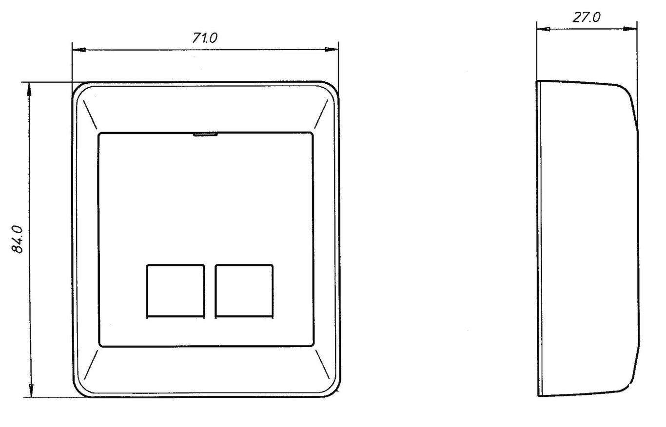 Komplett utenpåliggende modularkontakt med to uttak