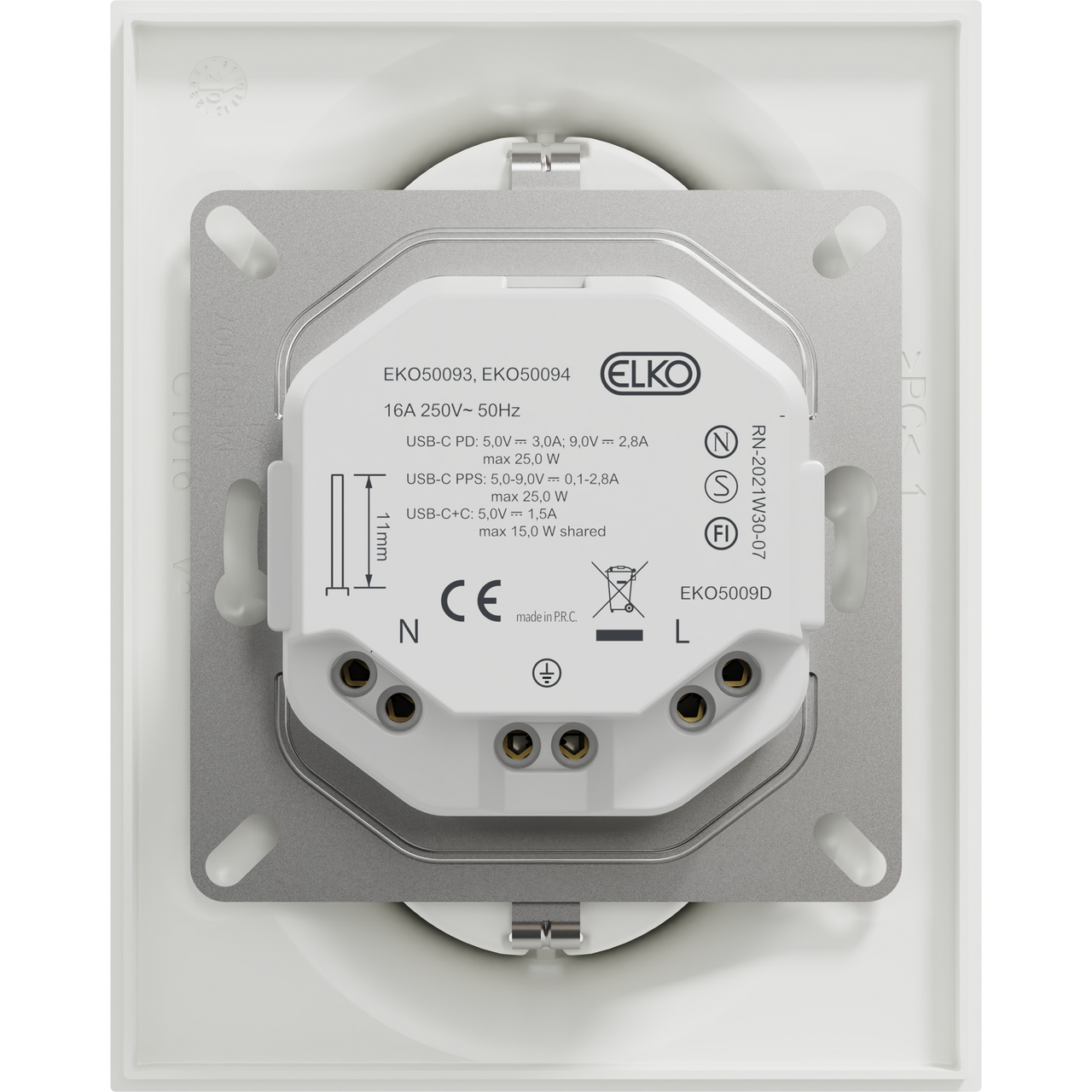 Merkespenning: 220–250 V ACNettverksfrekvens: 50 HzMerkestrøm stikkontakt: 16 AMaks effekt USB-C: 25 WUSB-C utgang 1: 5 V DC / 3 AUSB-C utgang 2: 9 V DC / 2,8 AStandby-forbruk: < 0,1 WIP-grad: 20Innbyggingsdybde: 32 mmMål(B x H x D): 87 x 109 x 54 mmForskrift om elektrisk utstyr § 21 forplikter Megaflis som tilbyder av elektrisk installasjonsmateriell til å opplyse om at installasjonsmateriell ment for å kunne inngå i et fast elektrisk anlegg kan kun installeres av en registrert installasjonsvirksomhet. Unntatt er elektrisk materiell som utelukkende er ment for bruk i faste teleinstallasjoner, og elektrisk materiell som forbruker selv lovlig kan installere. Her kan du lese mer om hva du har lov til å gjøre selv av elektrisk arbeid: https://www.sikkerhverdag.no/strom/gjor-det-selv/elektrisk-arbeid-dette-kan-du-gjore-selv-av-elektrisk-arbeid/