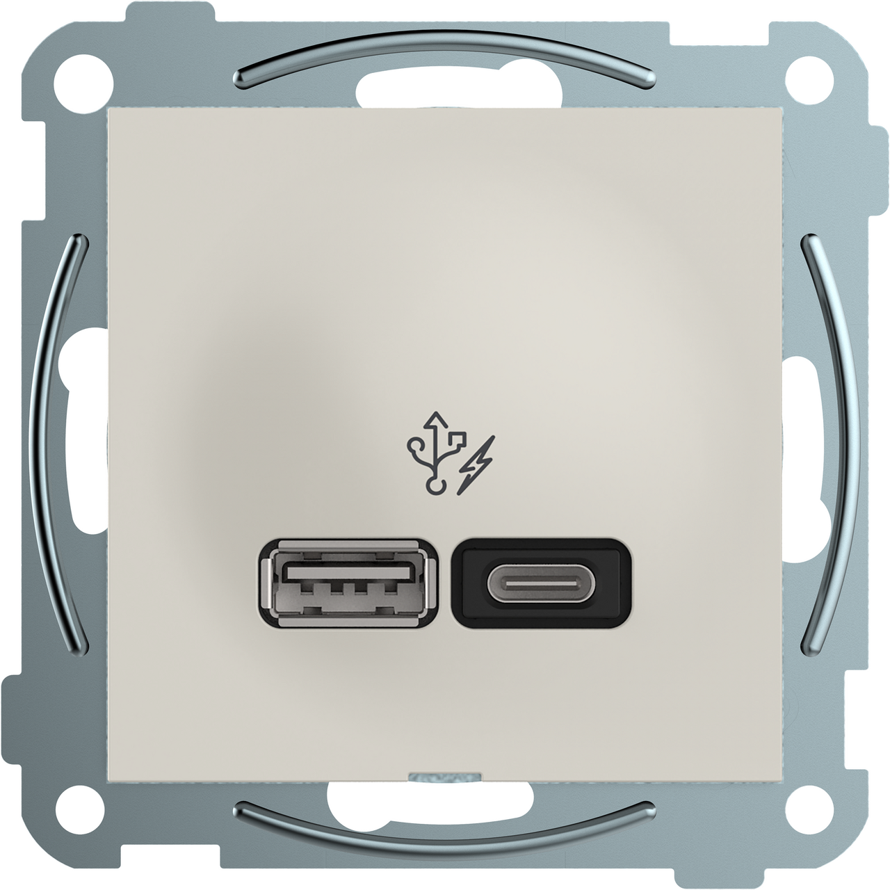 USB A+C for innfelt installasjon. Type C opp til 45W. Kompletteres med rammer fra PLUS serien. Innebygd beskyttelse mot overoppheting gjennom begrensning av overstrømmer (kortslutning) og overspenninger i USB uttaket eller tilkoblete laster. Sikker ladning gjennomføres ved automatisk strømjustering i henhold til temperaturøkning.