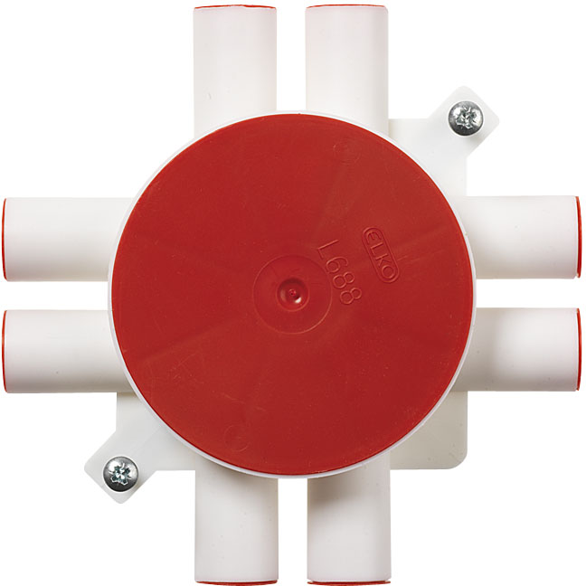 20 mm rør kan tilsuttes ved hjelp av 20 mm muffe. Leveres med tettepropper og pusselokk. Ved montering av produkter i takboksen, bruk maskinskrue M4.