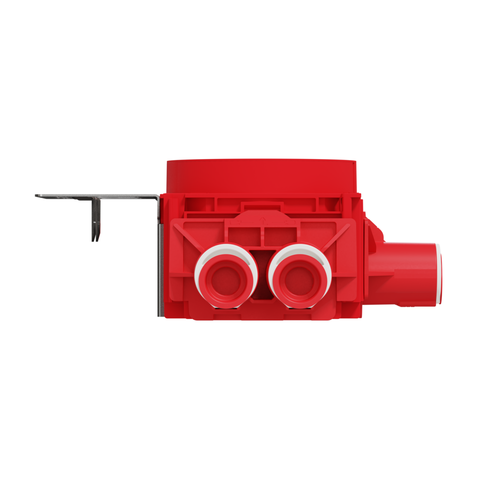 Veggboksen har 20mm stusser med reduksjon til 16mm, og leveres med pusselokk og propper.