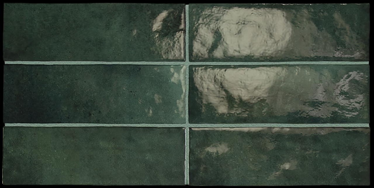 Artisan er en moderne keramisk flis i størrelse 6,5x20 cm. Overflaten varierer mellom forskjellige mørke grønntoner, med en bølgete og glatt struktur. Flisen egner seg godt på kjøkken eller som veggflis på bad.