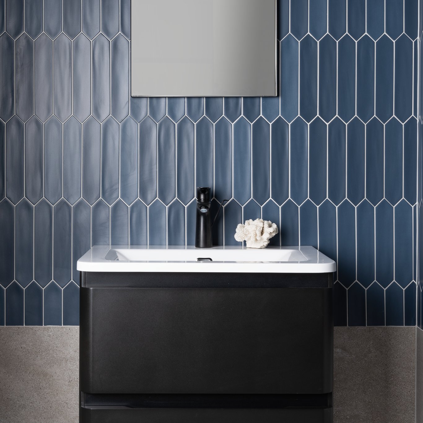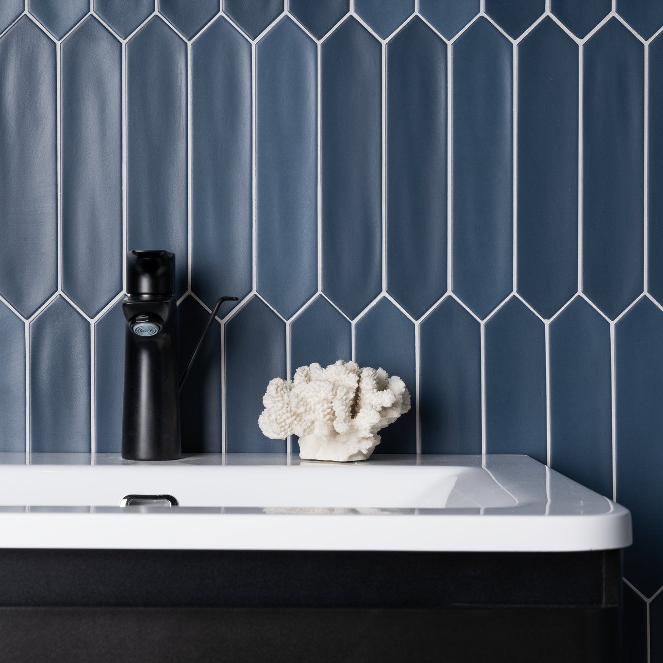 Lanse-serien fra spanske Equipe Ceramicas er en serie keramiske veggfliser i vakre farger. Denne flisen i størrelse 5 x 25 har en matt overflate i en marineblå farge.