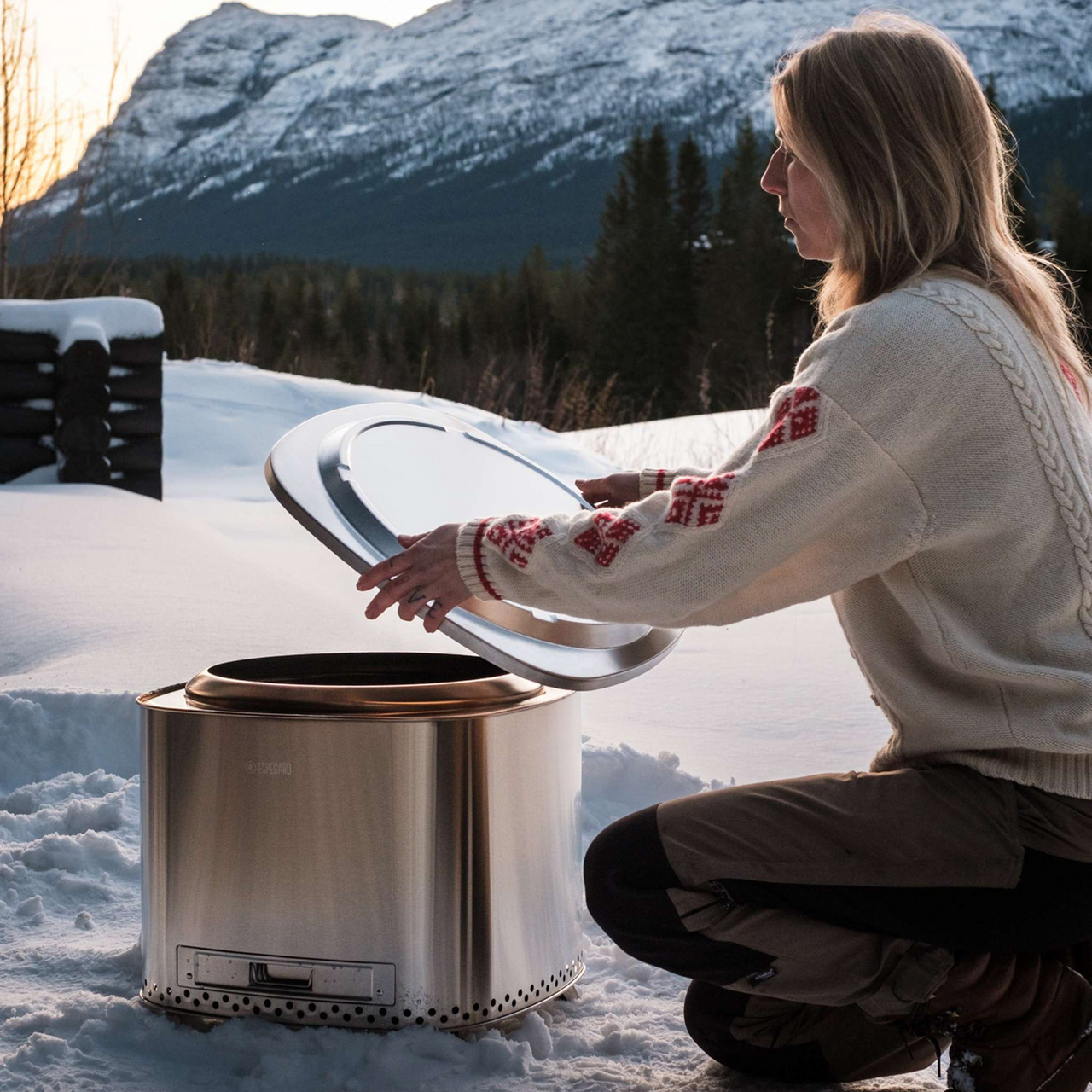 Dette lokket fra Espegard er et prakrisk tilbehør som beskytter bålrenneren mot regn og snø når den ikke er i bruk.