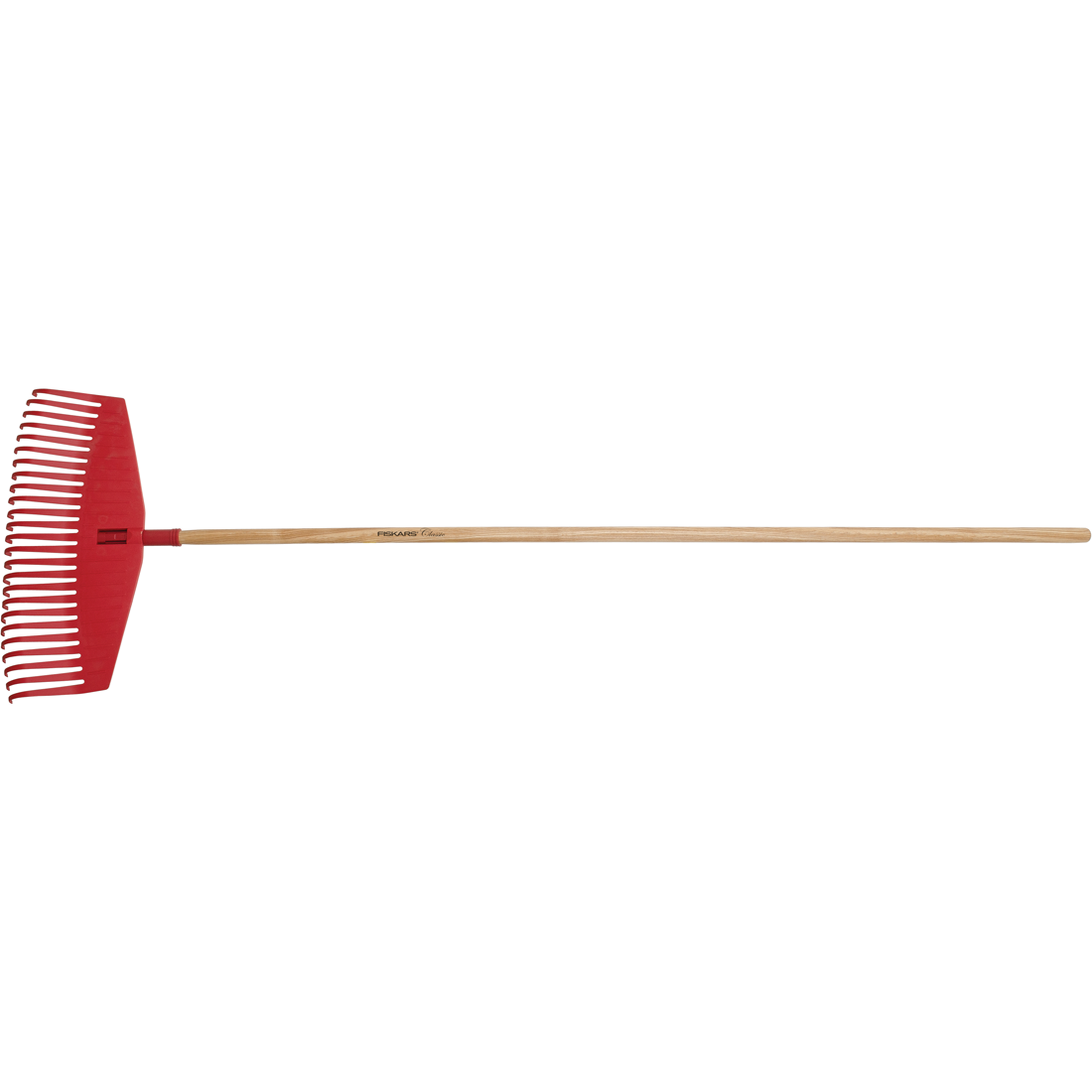 Denne brede løvriven fra Fiskars tåler hard og kontinuerlig bruk, og egner seg for større områder.