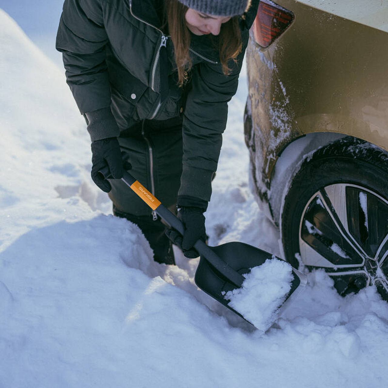 Denne bilspaden fra Fiskars er en solid bilskuffe som har sin naturlige plass i bilen.