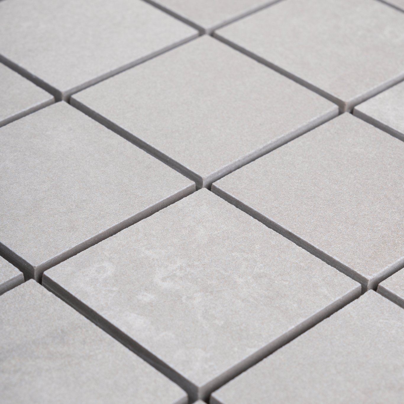 Industrial Silver i størrelse 5x5 cm på nett 30x30 cm representerer en kombinasjon av grå fargetoner. Flisen består av lyse gråtoner, med innspill av off-white-områder i en lys og behagelig miks i et mønster som kan minne om slett betong.