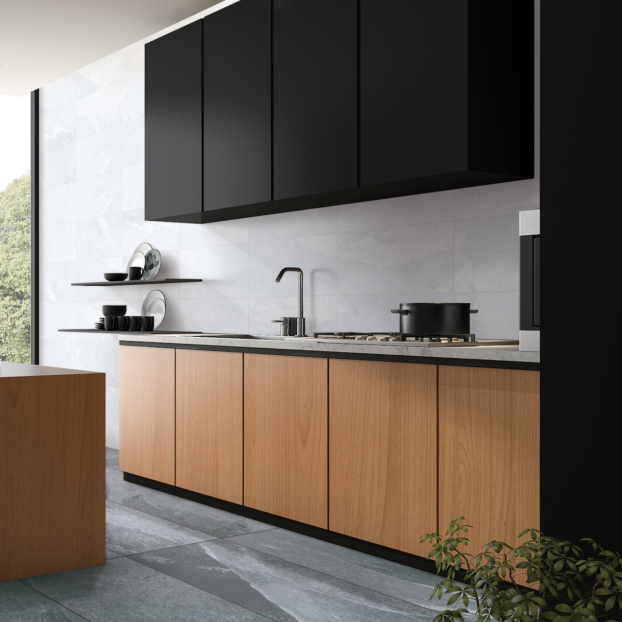 Overflaten er ru og matt, med steinstruktur og fargespill i lyse gråtoner med innspill av mørkere og lysere farger. Flisen har en eksklusiv overflate i utseende, og vil skape en rustikk og trendy helhet med sin naturtro steinstrukturerte overflate. I kombinasjon med mer tradisjonelle elementer og strukturerte materialer vil man få en roligere og mer rustikk helhet.