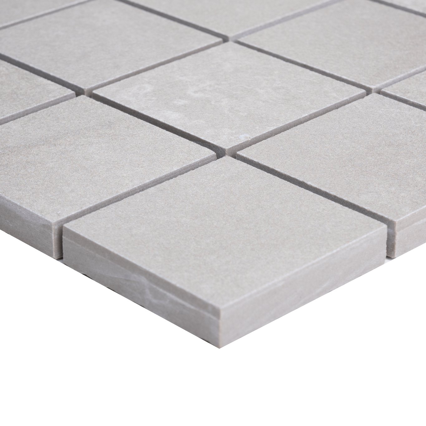 Industrial Silver i størrelse 5x5 cm på nett 30x30 cm representerer en kombinasjon av grå fargetoner. Flisen består av lyse gråtoner, med innspill av off-white-områder i en lys og behagelig miks i et mønster som kan minne om slett betong.