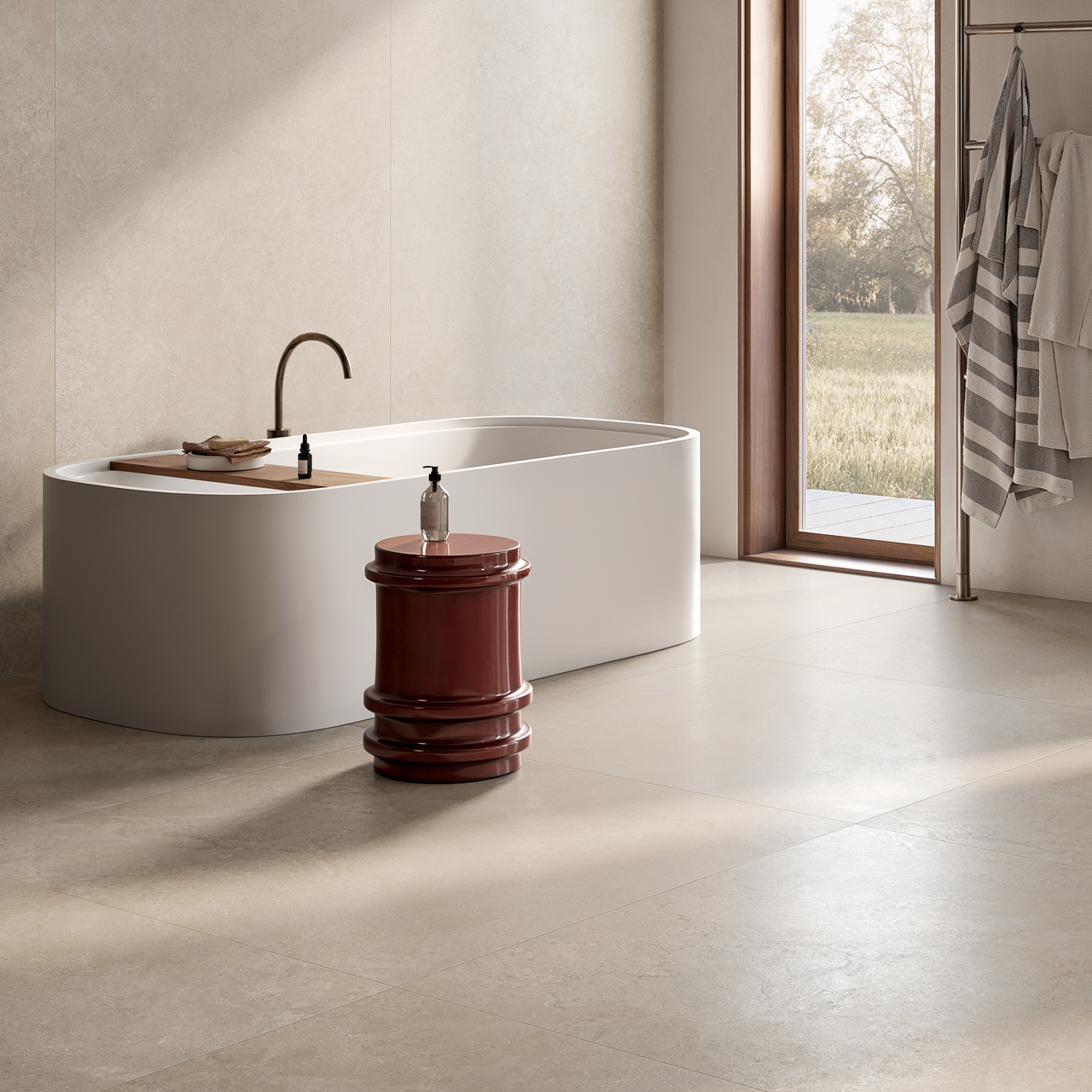 Lithos-serien fra italienske Casalgrande Padana består av tidløse, minimalistiske porcellanatofliser som kan brukes både innen- og utendørs. Denne flisen i størrelse 60 x 120 cm har en dempet, nøytral finish som passer godt til både moderne og klassiske interiører.
