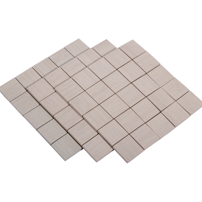 Mosaikkflisen har et format med mål på 6x5, men leveres på brett med netting på 30x30. Overflaten er slett, halvmatt med en imitasjon av trestruktur i skimrende lyse gråtoner på en offwhite flate. Overflate strukturen ligger i linjer, hvor annenhver flis er rotert, slik at det blir større variasjon og spill i flaten. Helheten vil gi en spennende og trendy flate som egner seg godt i kombinasjon med de fleste farger.