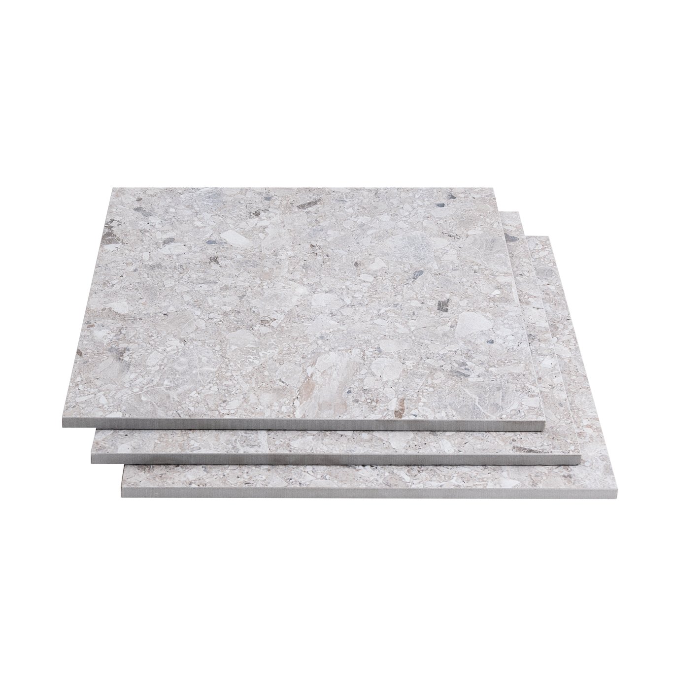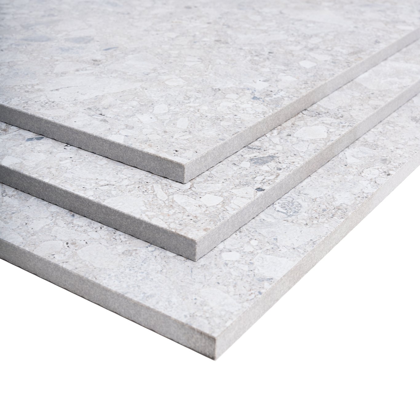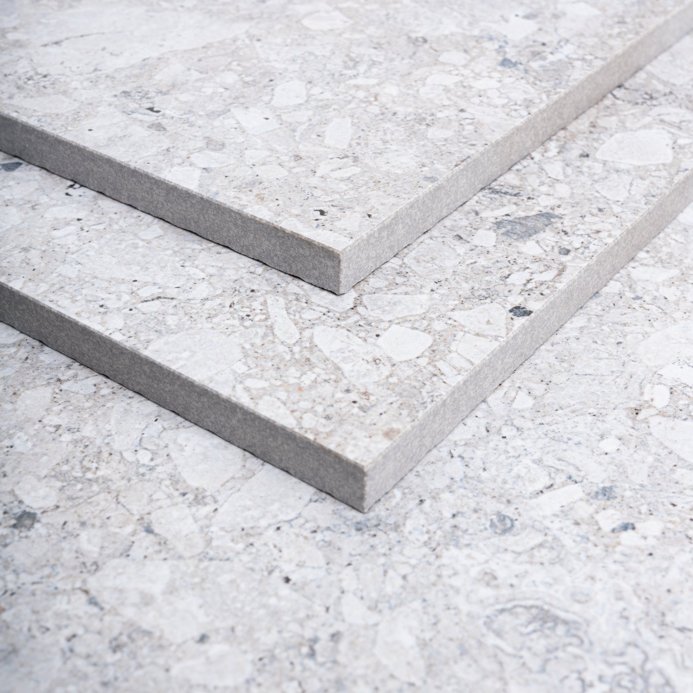 Pietre Di Paragone er en serie med urbane gulvfliser som kan brukes både innen- og utendørs. Flisene har en halvmatt overflate med terrazzo-imitasjon.