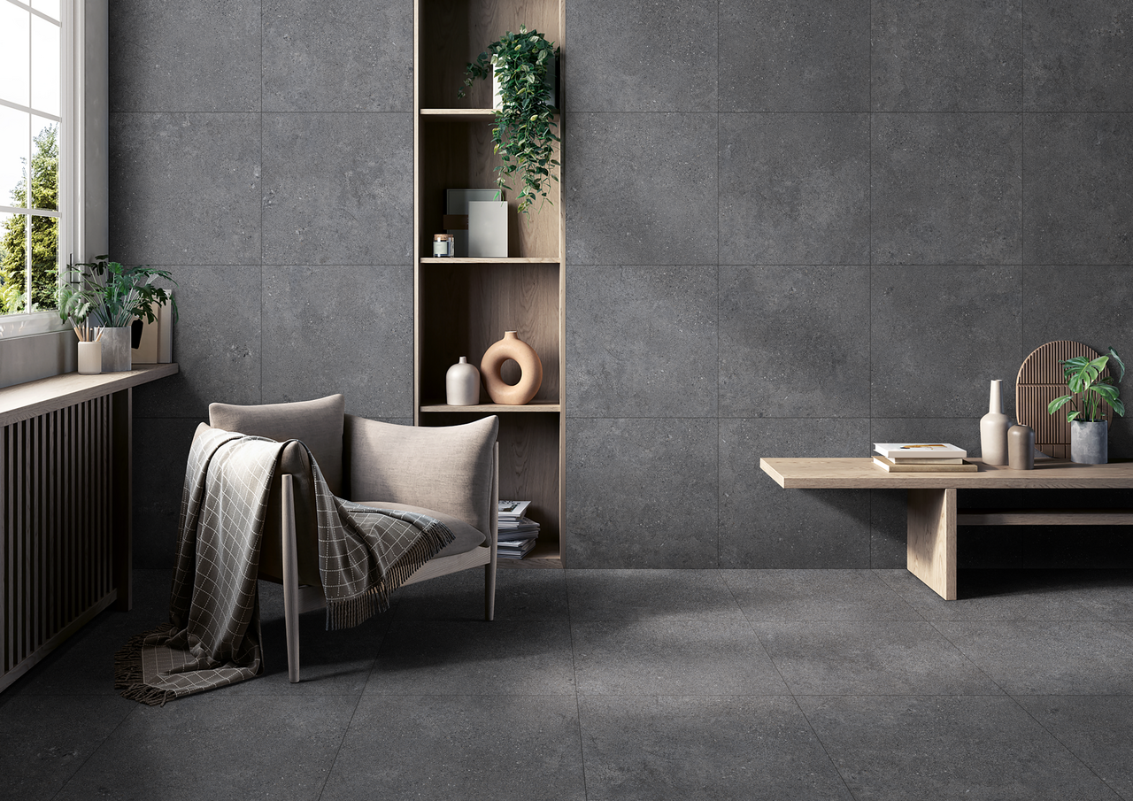 Serien Saulo er en slitesterk glasert porcellanato flis egnet for de fleste typer vegger og gulv, inne- utendørs.
