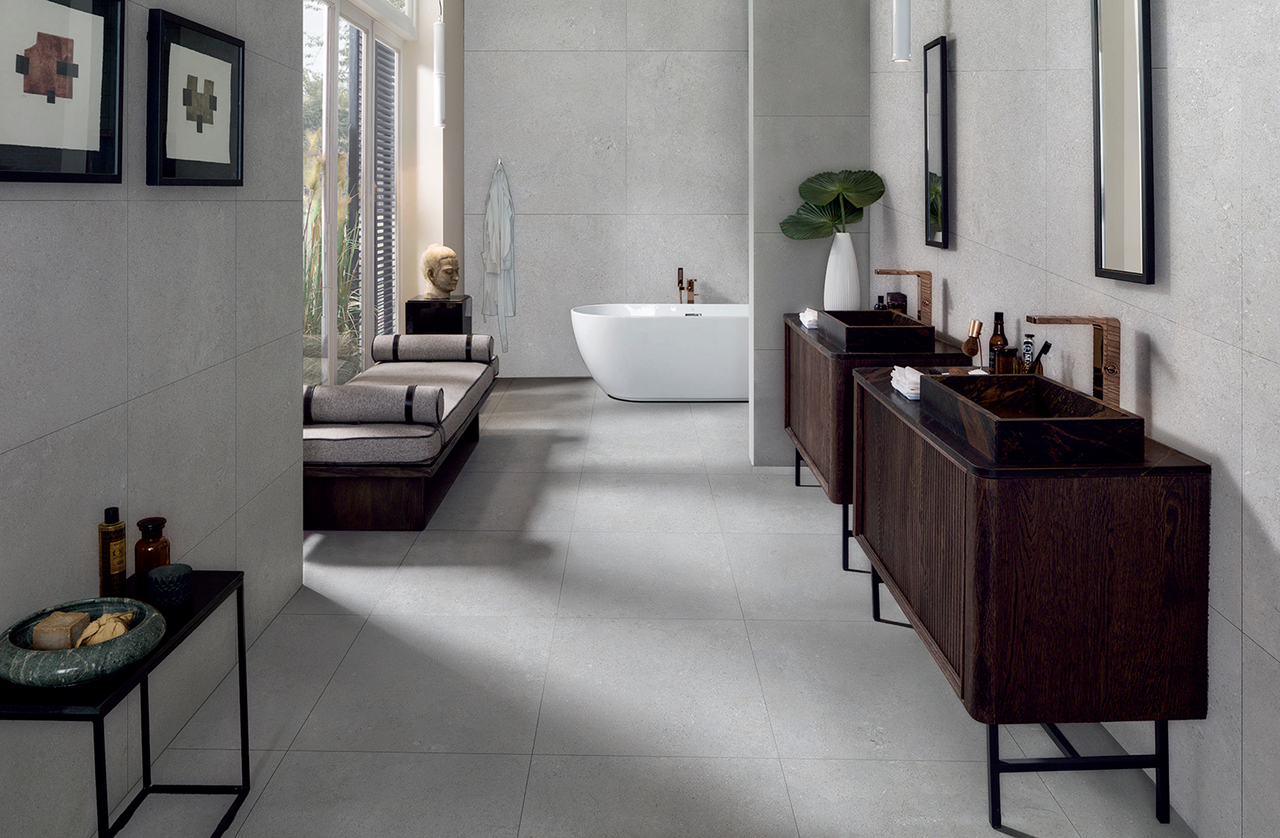 Serien Saulo er en slitesterk glasert porcellanato flis egnet for de fleste typer vegger og gulv, inne- utendørs.