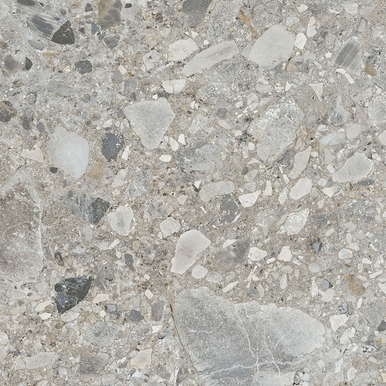 Terrazzo Antico er en terrazzo-inspirert porcellanatoflis i størrelse 60 x 60. Den har en beige hovedfarge, med innslag av sorte og grå spetter.