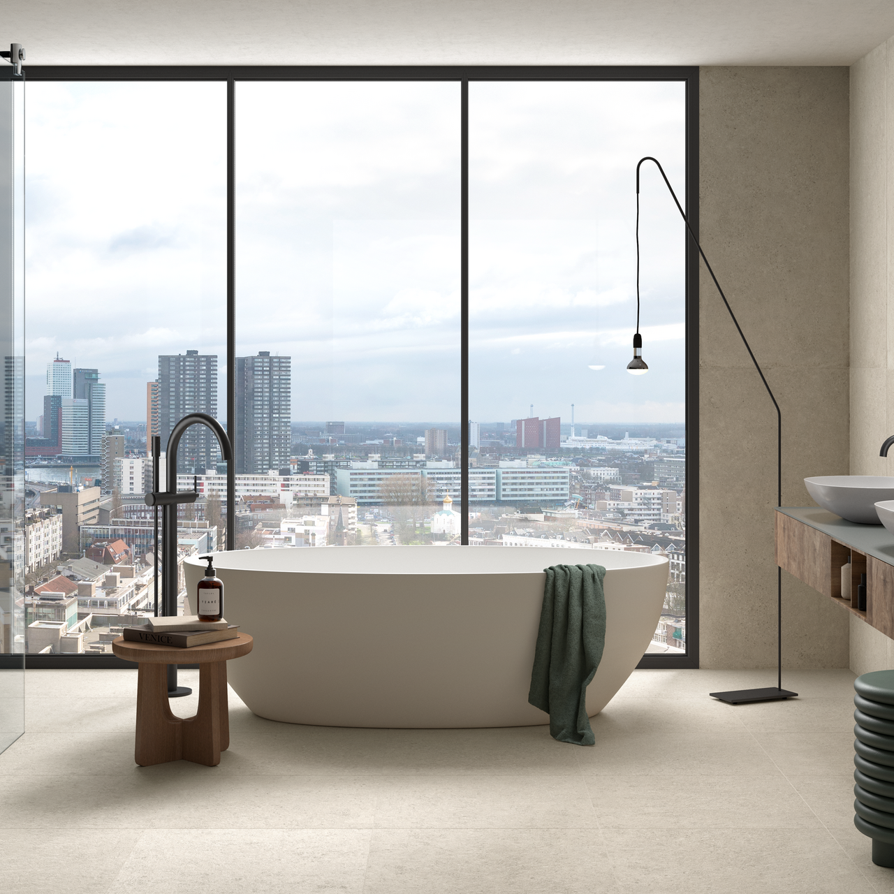Konkrete Bianco er en slitesterk flis i størrelse 60x120 cm. Flisen har en halvblank overflate av lyse fargetoner med innspill av mørkere toner. Konkrete har et stilrent uttrykk og gir en rolig og behagelig følelse i rommet. I kombinasjon med moderne interiør eller rustikke omgivelser, får du et et flott og tidsriktig design