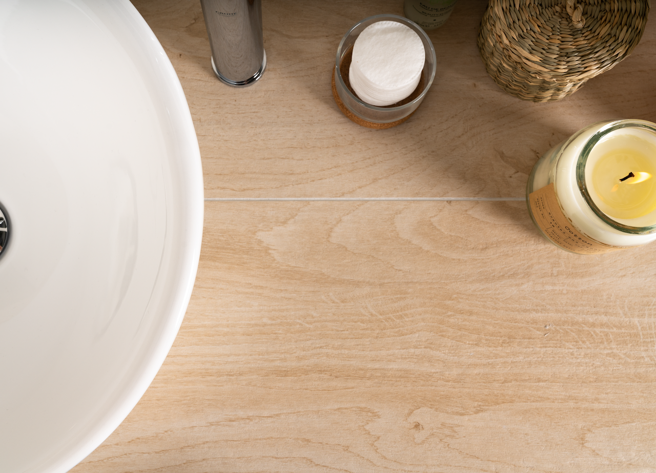 Flisen har et moderne format med mål på 22,5x90. Overflaten er lett strukturert, matt med en naturtro imitasjon av grov trestruktur med store kontraster i lyse bruntoner på en beige flate. Helheten vil gi en variert og spennende vegg- eller gulvflate med imitasjon av et vanlig tregulv, men med en langt sterkere flate enn treverk.