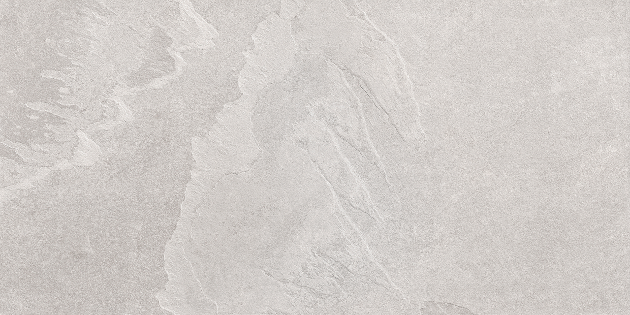 Overland Pearl fra spanske Cifre er en moderne flis med en slitesterk overflate. Flisen i størrelse 60 x 120 har en ru og matt overflate med steinstruktur og fargespill i lysegrå toner med innspill av mørke og lysere farger.