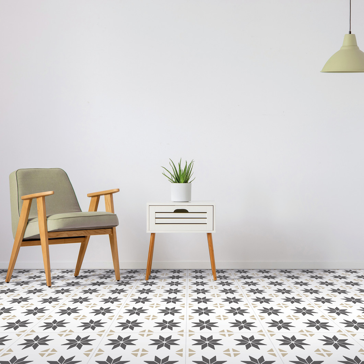 Selvklebende vinylfliser fra D-C-Fix, som gjør det enkelt å freshe opp gulvet og skape et nytt uttrykk i rommet.