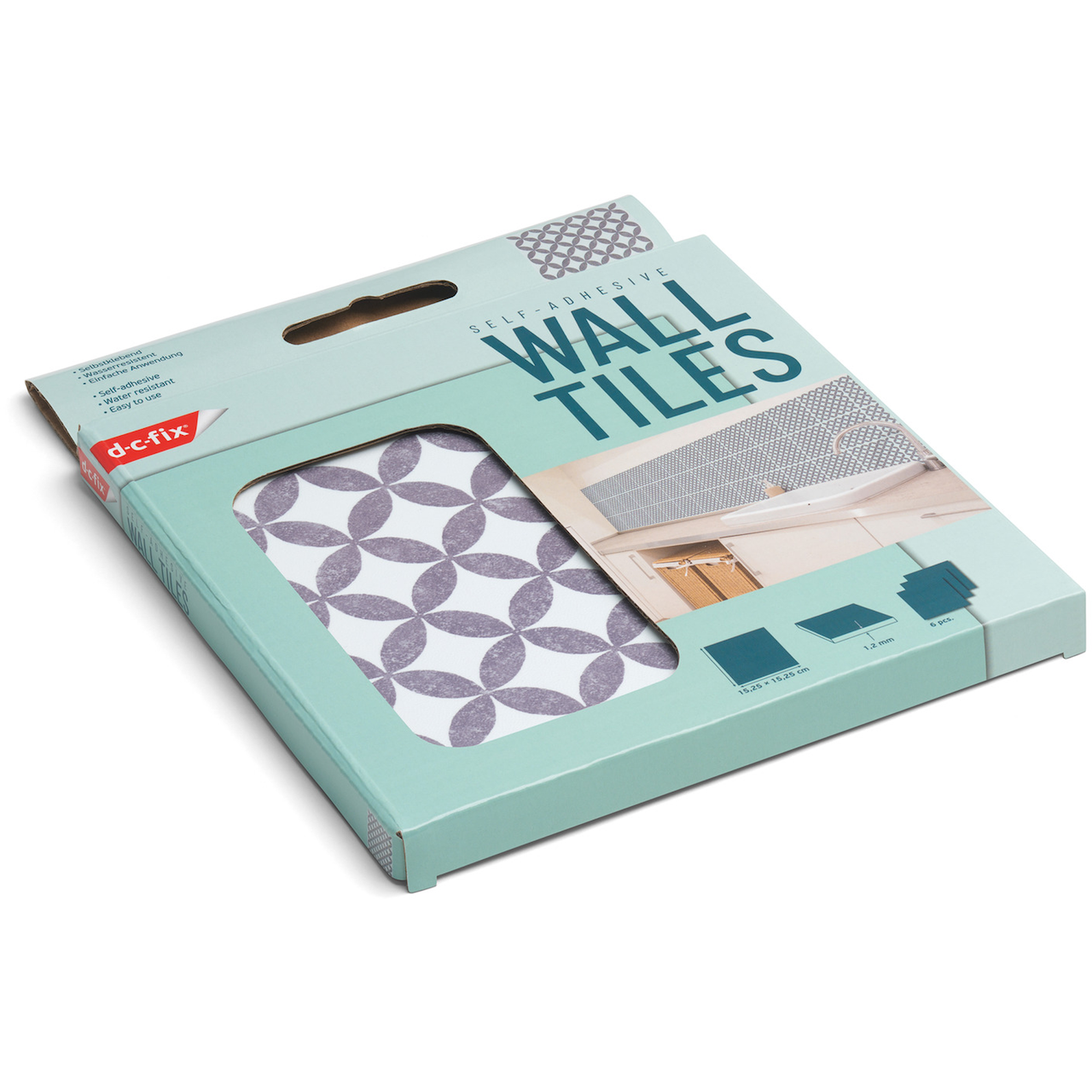 Selvklebende vinylfliser fra D-C-Fix, som gjør det enkelt å freshe opp veggen og skape et nytt uttrykk i rommet. Overflaten består av ulike mønstre.