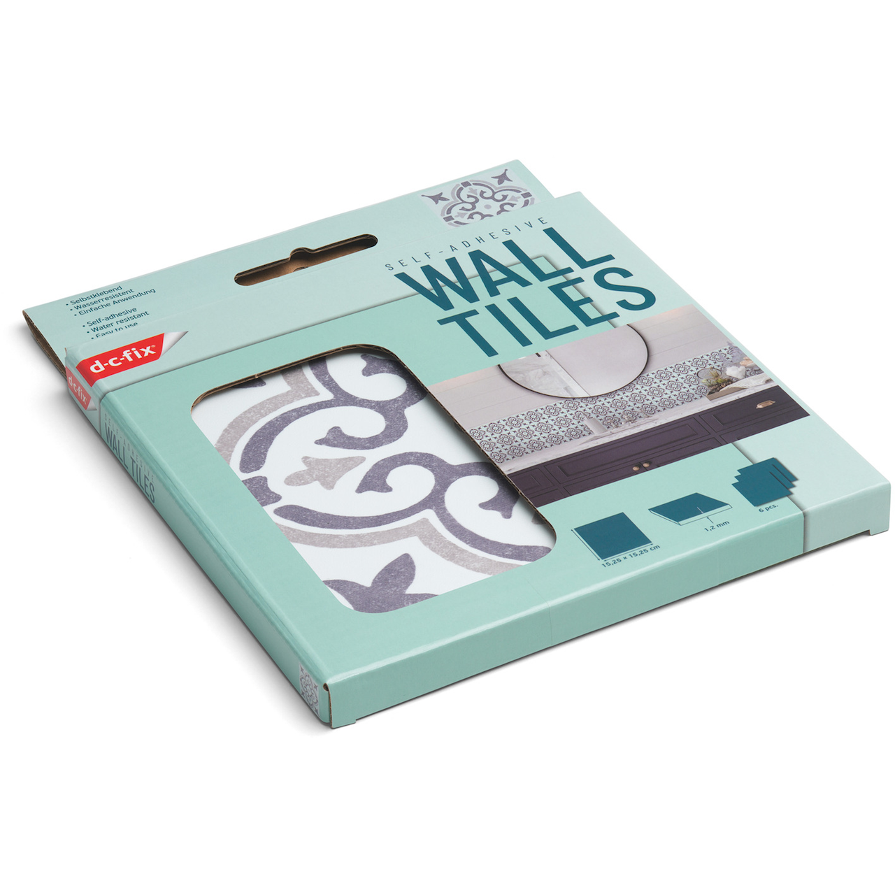 Selvklebende vinylfliser fra D-C-Fix, som gjør det enkelt å freshe opp veggen og skape et nytt uttrykk i rommet. Overflaten består av ulike mønstre.