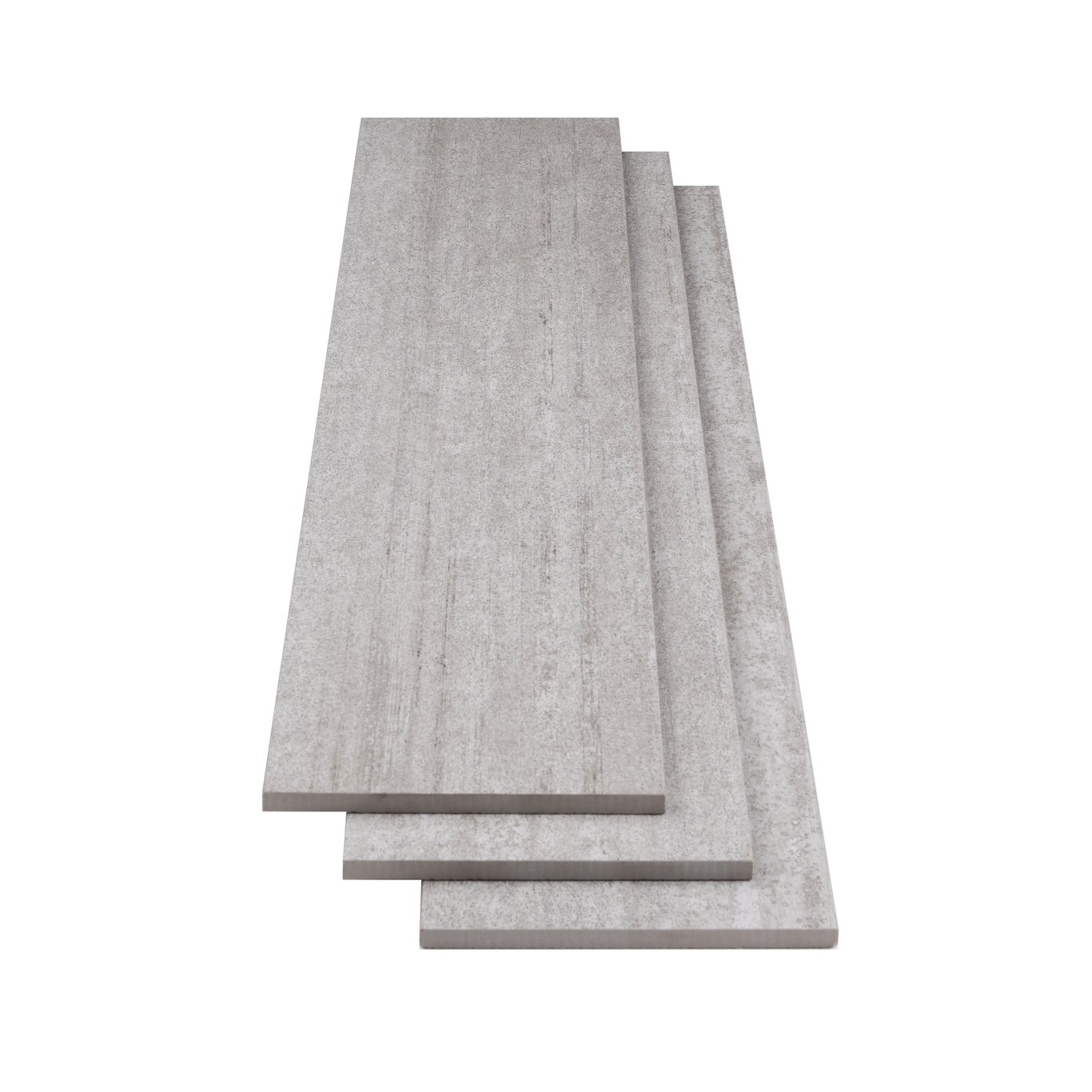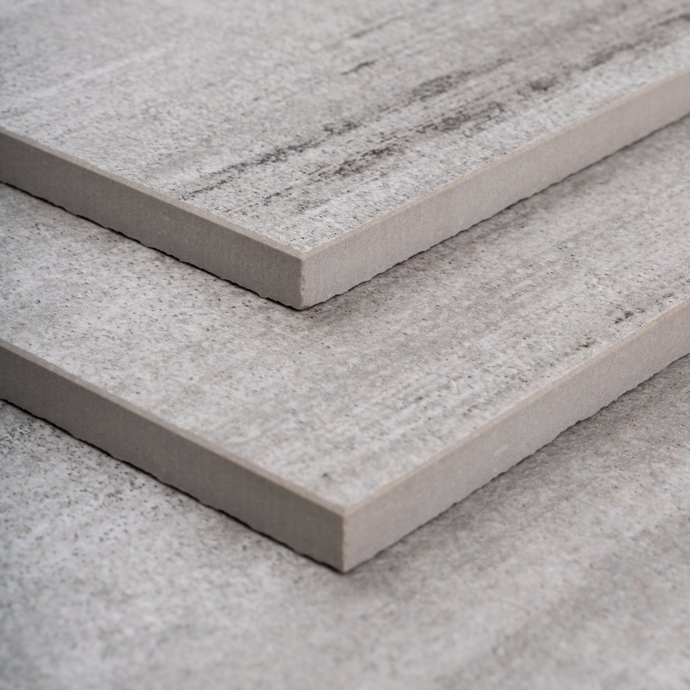 Flisen har et moderne format med mål på 15x60. Overflaten er slett, halvmatt med en imitasjon av betongstruktur i flisens lengderetning, i ulike gråtoner på en nøytral grå flate. Helheten vil gi en spennende og trendy flate som egner seg godt i kombinasjon med de fleste farger.