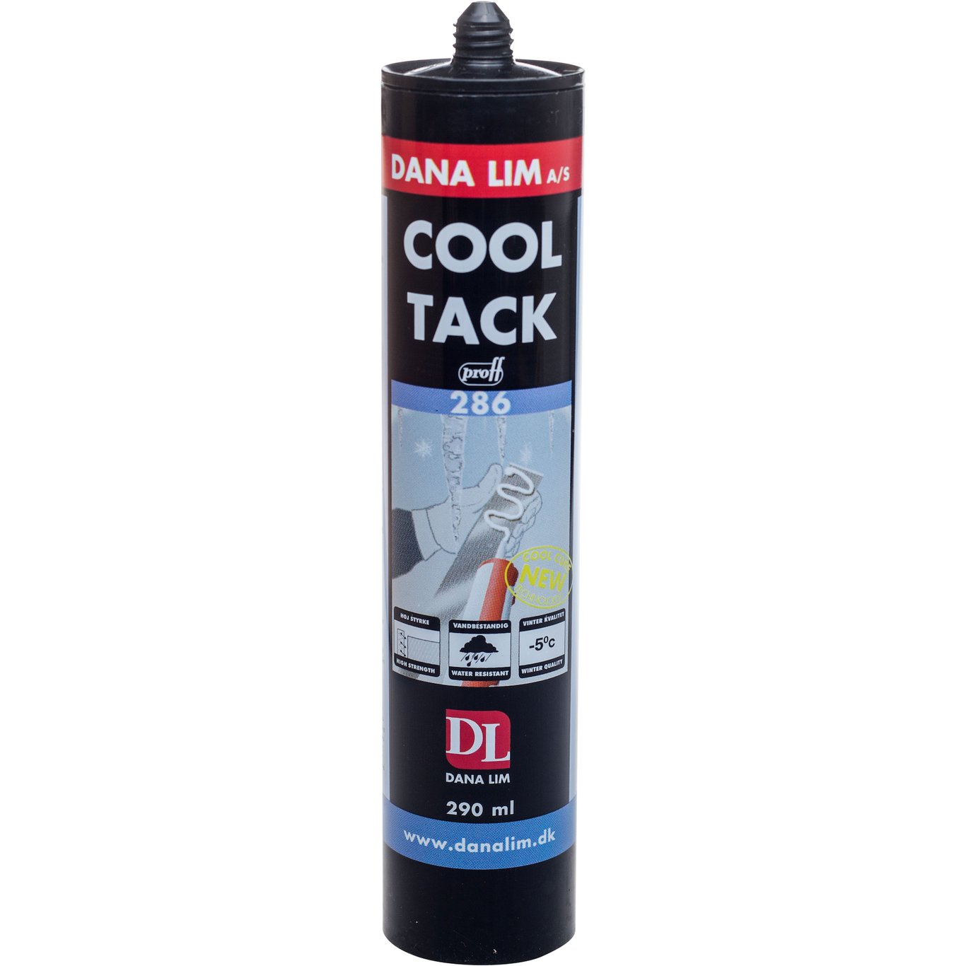 Cool Tack 286 er et nøytralt fuktherdende lim, uten oppløsningsmidler og phtahalater. Danner en sterk og samtidig elastisk limfug, som kan ta opp eventuelle bevegelser imellom bygningsdeler.