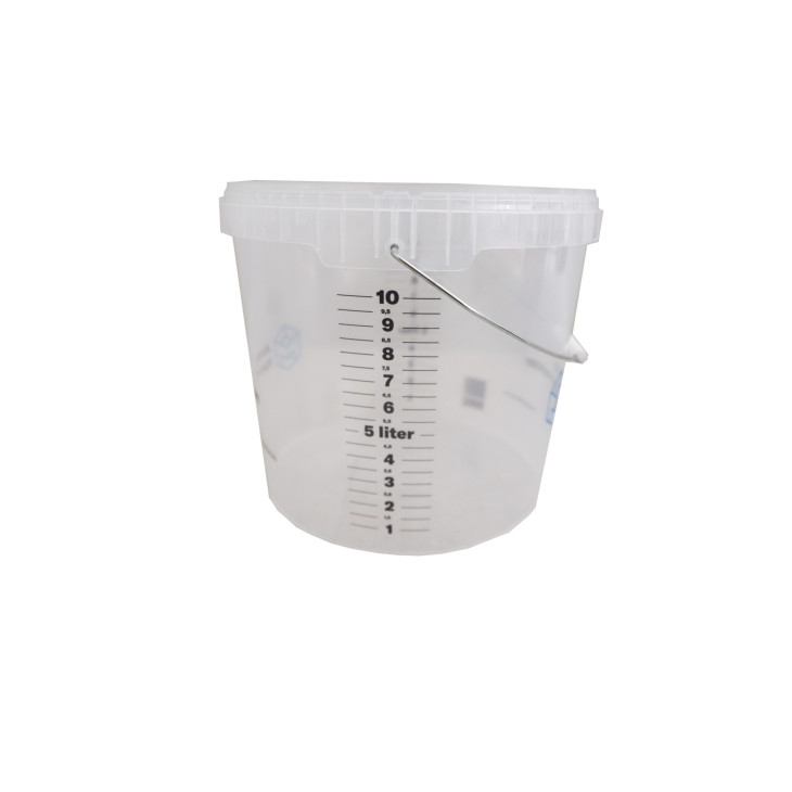 Bøtten er transparent, noe som gjør det enkelt å se innholdet og måle nøyaktig.