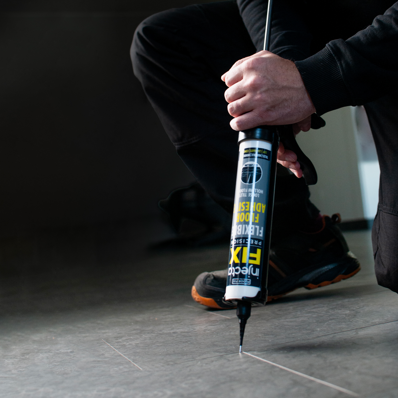 Limet er spesielt utviklet for å løse vanlige problemer i gulvkonstruksjoner, som løse fliser, hulrom, bomlyd og knirk i limte tregulv.