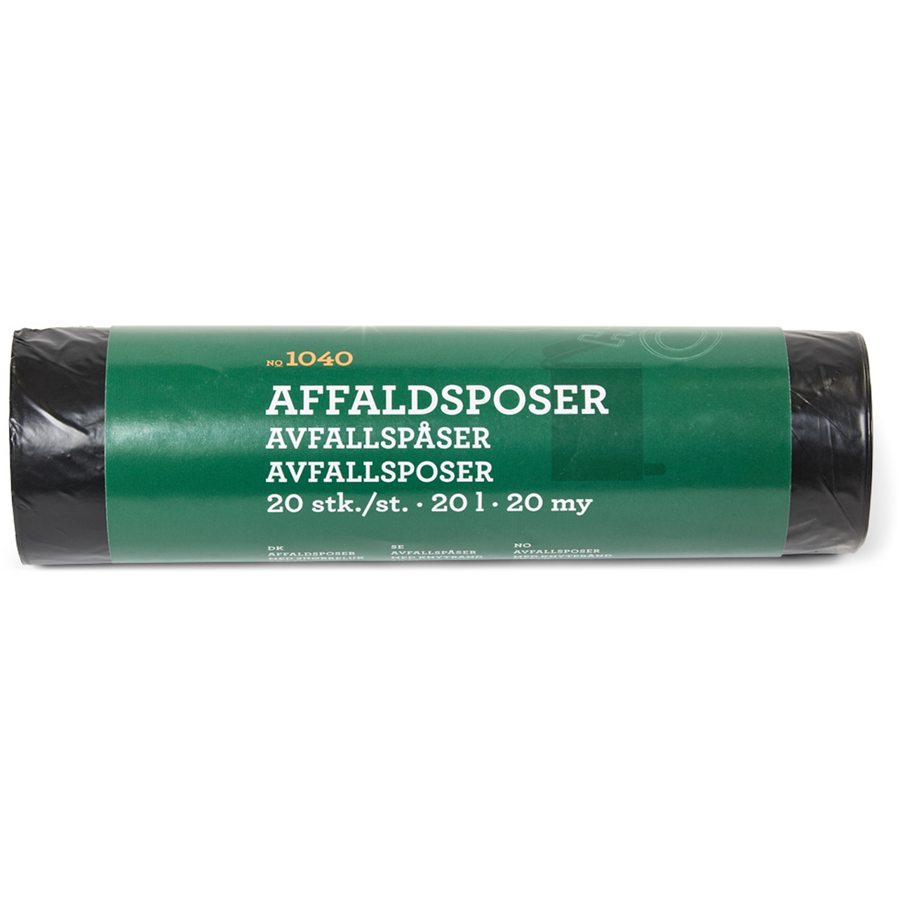 Rommer: 20 literAntall poser pr. rull: 20 stkPlasttykkelse: 20 myLeverandørens varenummer1040