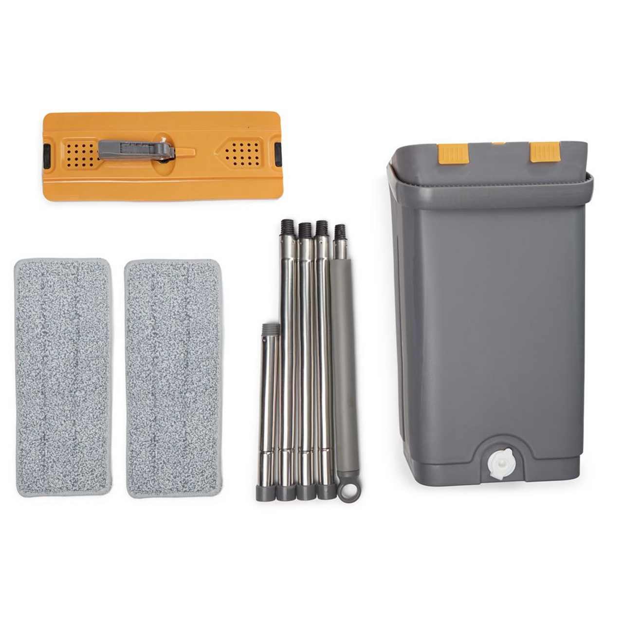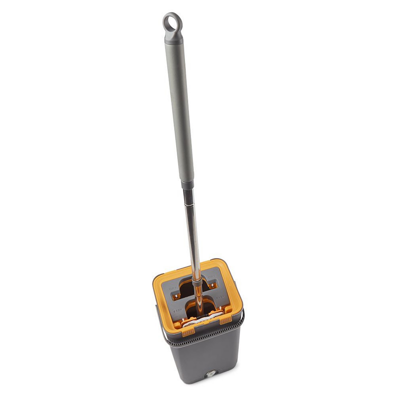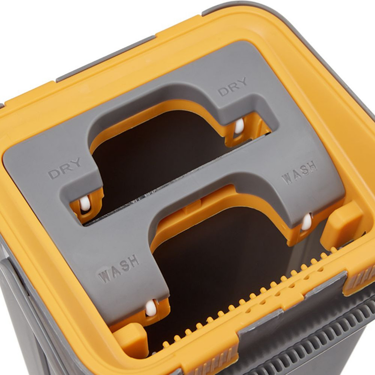 Bøtten er delt i to seksjoner, slik at det er en vaskedel og en vridedel. Bøtten er delt og kan romme 4,7 liter i den ene delen og 3,7 liter i den andre.