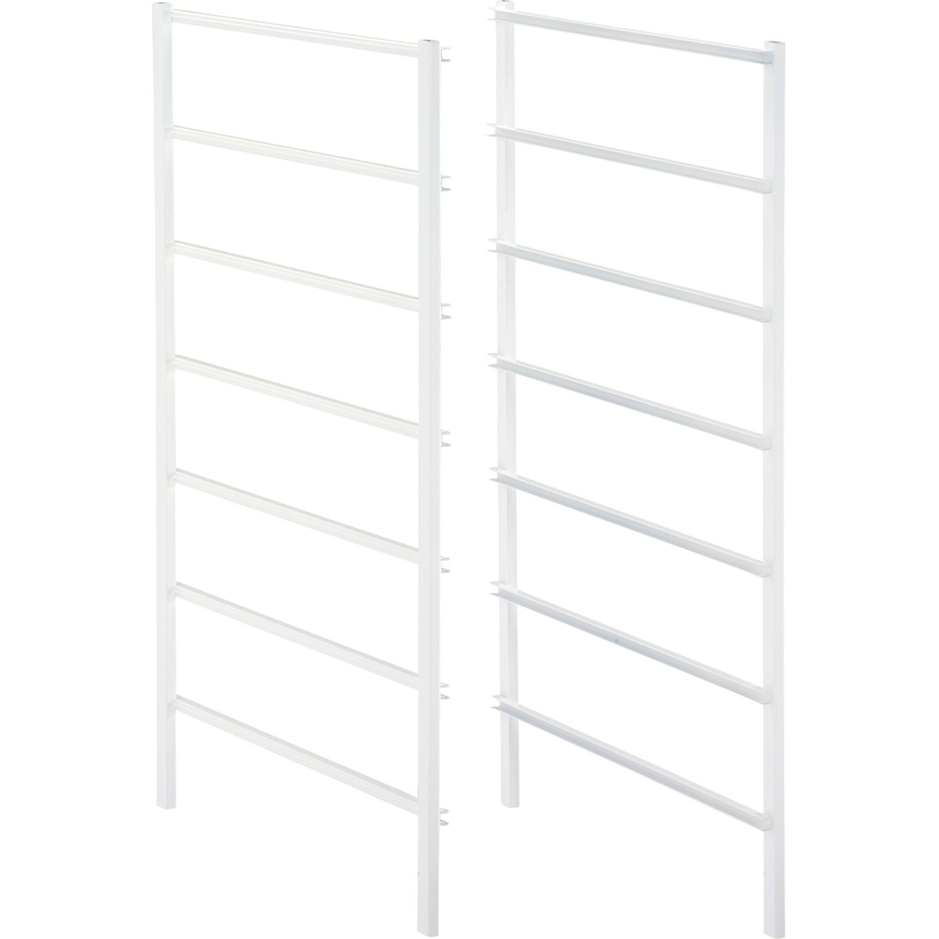 Denne 7-skinners gavelsiden fra Elfa monteres sammen med tverrstag og kurver for en komplett løsning. Med et påbygningssett kan du enkelt stable flere enheter på hverandre. Du kan også legge til en topphylle for å lage en arbeidsflate.