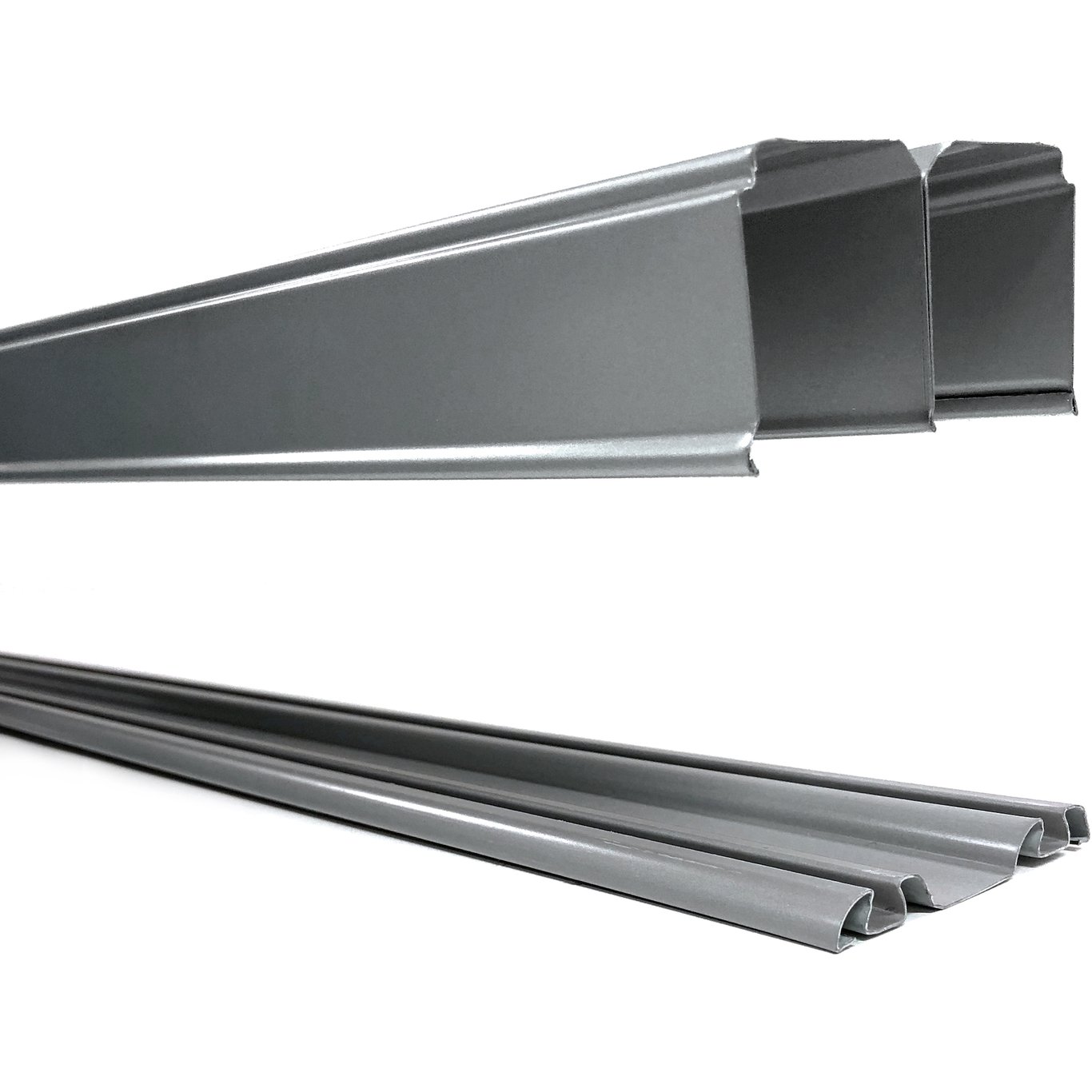 Dette skinnesettet fra Elfa er for å montere skyvedører i. For en komplett løsning, kombiner to skyvedører i standardstørrelse, et skinnesett og et startkit. Løsningens totale høyde blir 2350 mm, og den anbefalte dybden er 675 mm for å få plass til kleshengere.