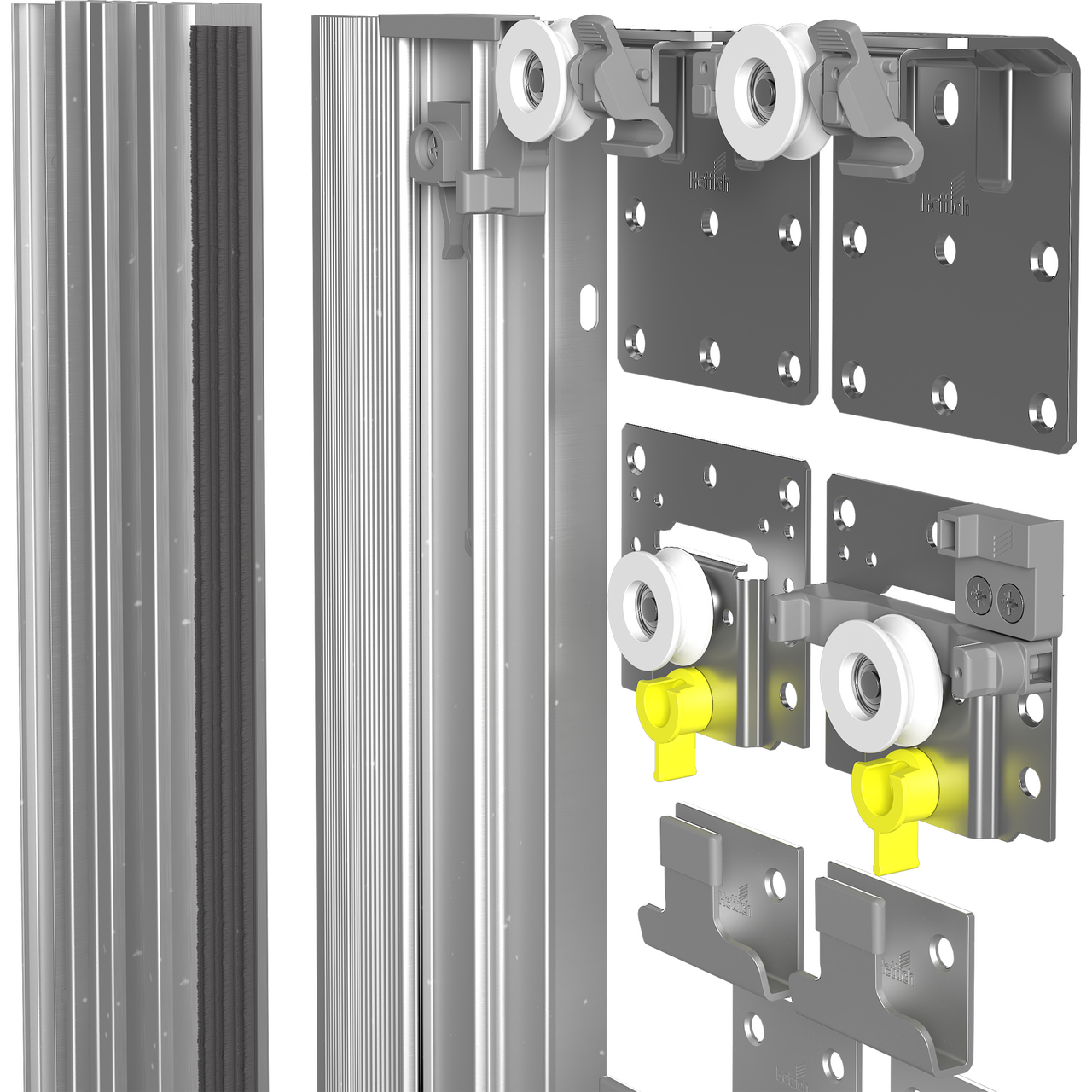 Skyvedørbeslagsett til Lind Nest garderobeløsning.