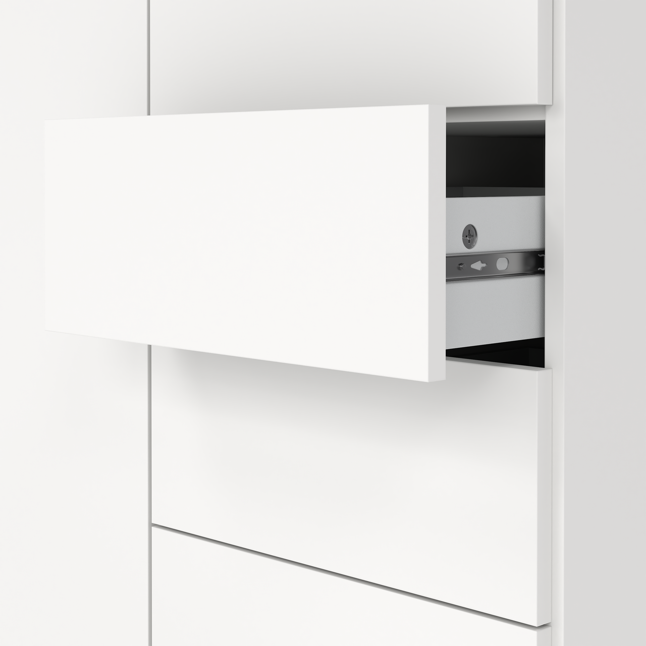 Farge: hvitMateriale: sponKlesstang inkludertVeltesikring inkludertSkuffeskinner med kulelager i stålFSC®-sertifisertTekniske spesifikasjoner