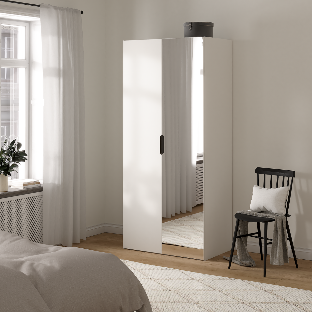 Lind nest garderobeskap 100x220x60cm hvit med speil