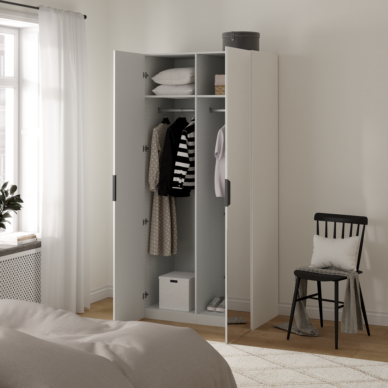 Lind Nest er en fleksibel garderobeløsning der man kan tilpasse garderoben akkurat slik man ønsker. Enten man vil ha det stilrent og minimalistisk eller fullt av smarte oppbevaringsløsninger, tilbyr Lind Nest friheten til å skape en garderobe som passer perfekt til ditt hjem og din hverdag. Man kan også supplere med ekstra deler og moduler for å tilpasse garderoben videre etter behov. Pakken består av 6 kolli, som sammen utgjør et komplett skap på 100 x 220 x 60 cm.