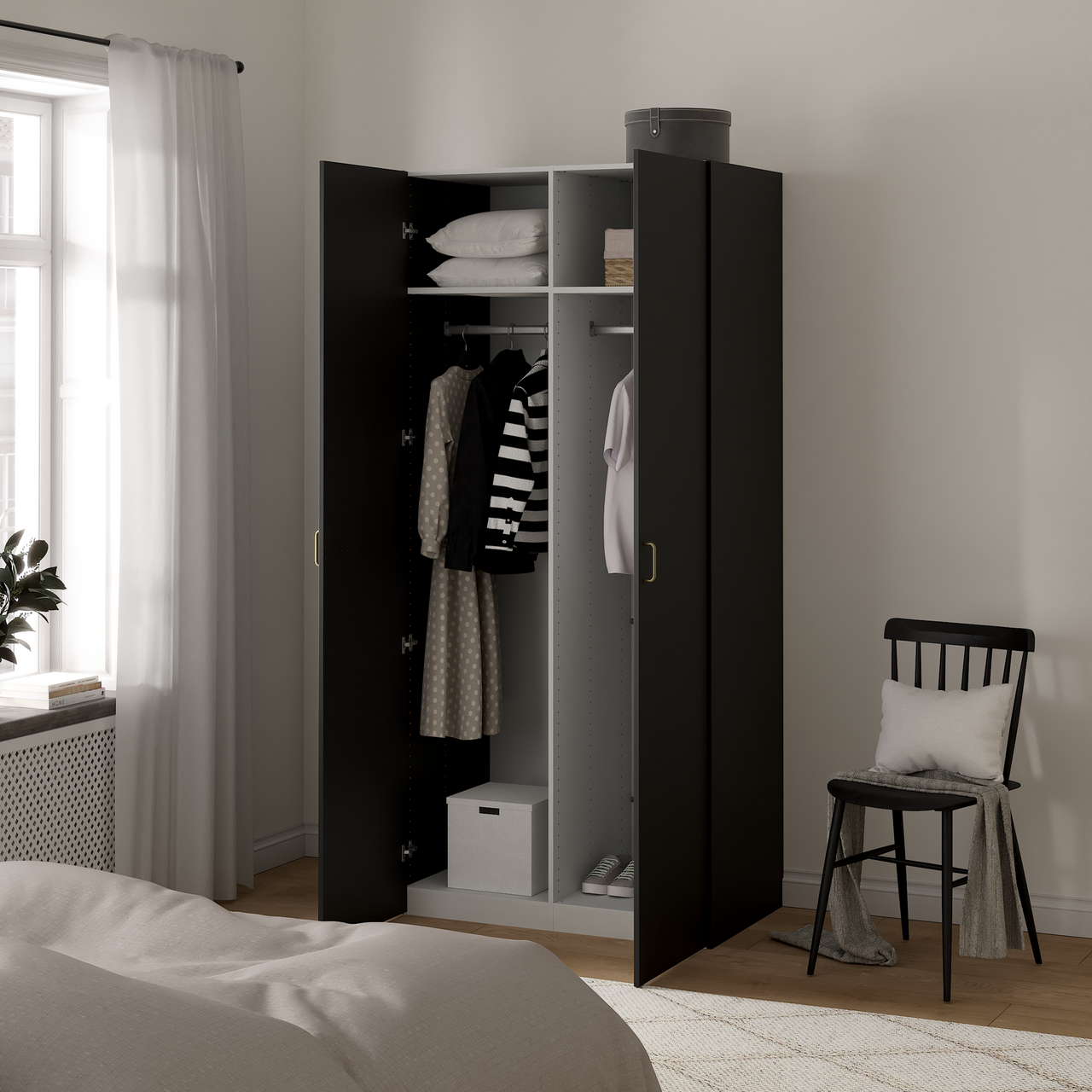 Lind nest garderobeskap 100x220x60cm sort