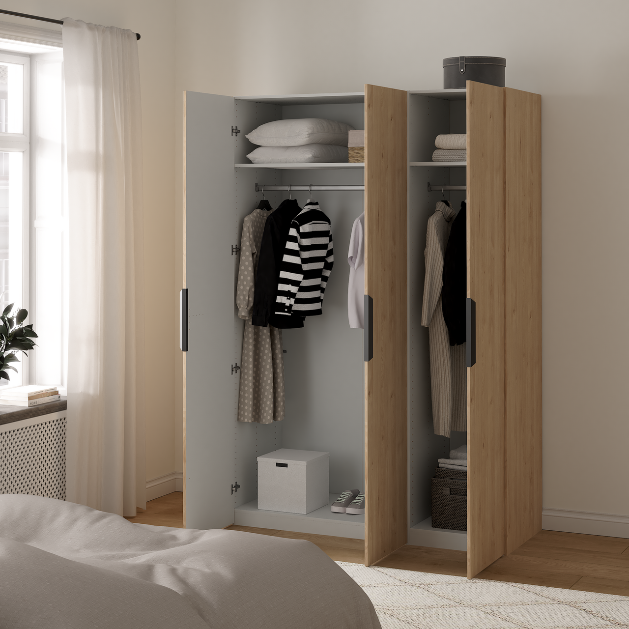 Lind Nest er en fleksibel garderobeløsning der man kan tilpasse garderoben akkurat slik man ønsker. Enten man vil ha det stilrent og minimalistisk eller fullt av smarte oppbevaringsløsninger, tilbyr Lind Nest friheten til å skape en garderobe som passer perfekt til ditt hjem og din hverdag. Man kan også supplere med ekstra deler og moduler for å tilpasse garderoben videre etter behov. Pakken består av 6 kolli, som sammen utgjør et komplett skap på 150 x 220 x 60 cm.