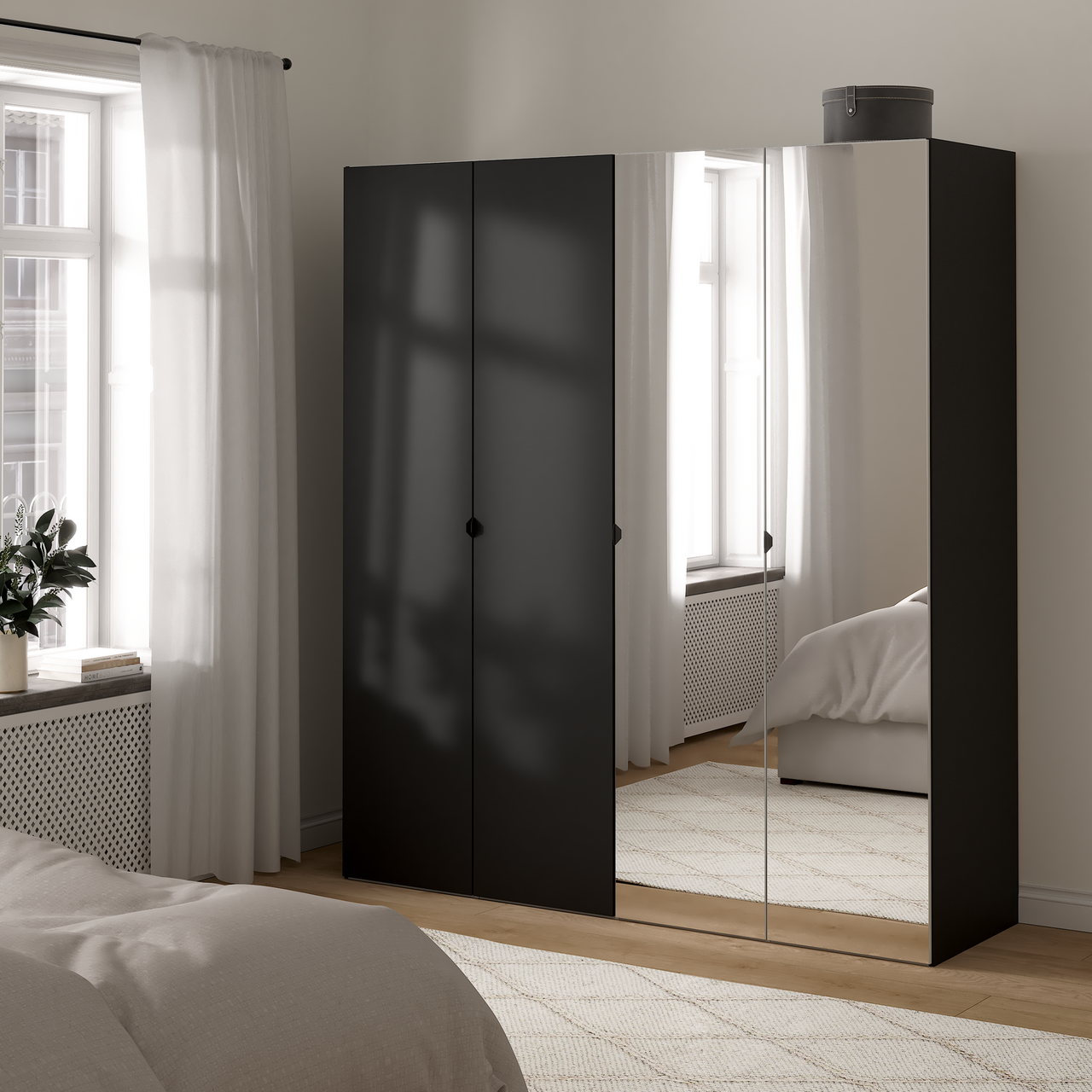 Lind nest garderobeskap 200x220x60cm sort med speil