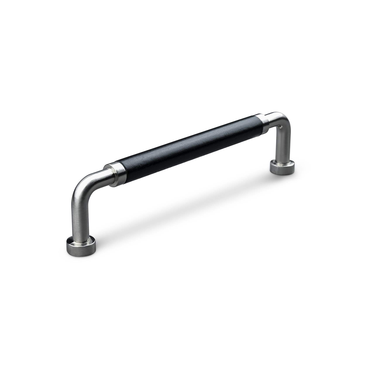 Dette håndtaket fra Theofils har en stilig utførelse i rustfritt stål, og er svøpt i sort lær. Håndtaket bidrar til et elegant uttrykk på skuffe- og dørfrontene dine.