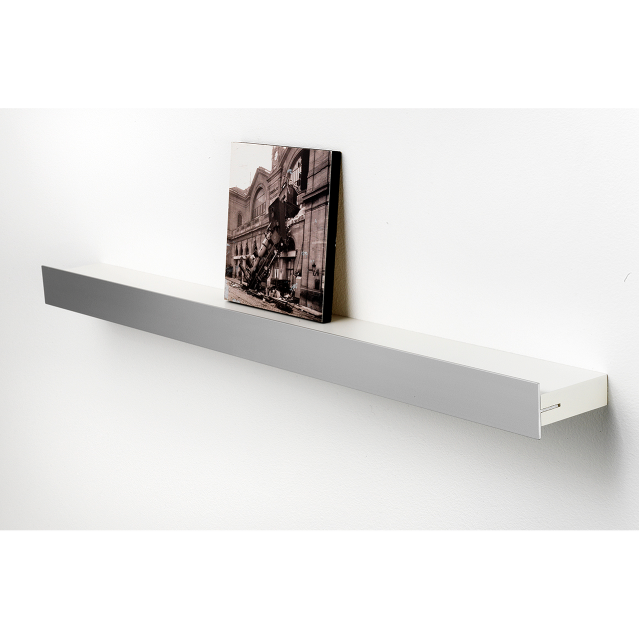 Hyllen er laget av lakkert tre og eloksert aluminium og med sin stilrene estetikk og funksjonell design, er denne hyllen ideell for oppbevaring og utstilling av magasiner, dekorasjoner og ander gjenstander.