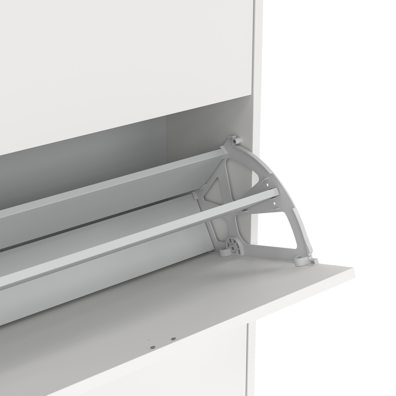 Fiora skoskap fra Lind er en allsidig og minimalistisk plassbesparende oppbevaringsløsning, med to rom og nedfellbare dører.