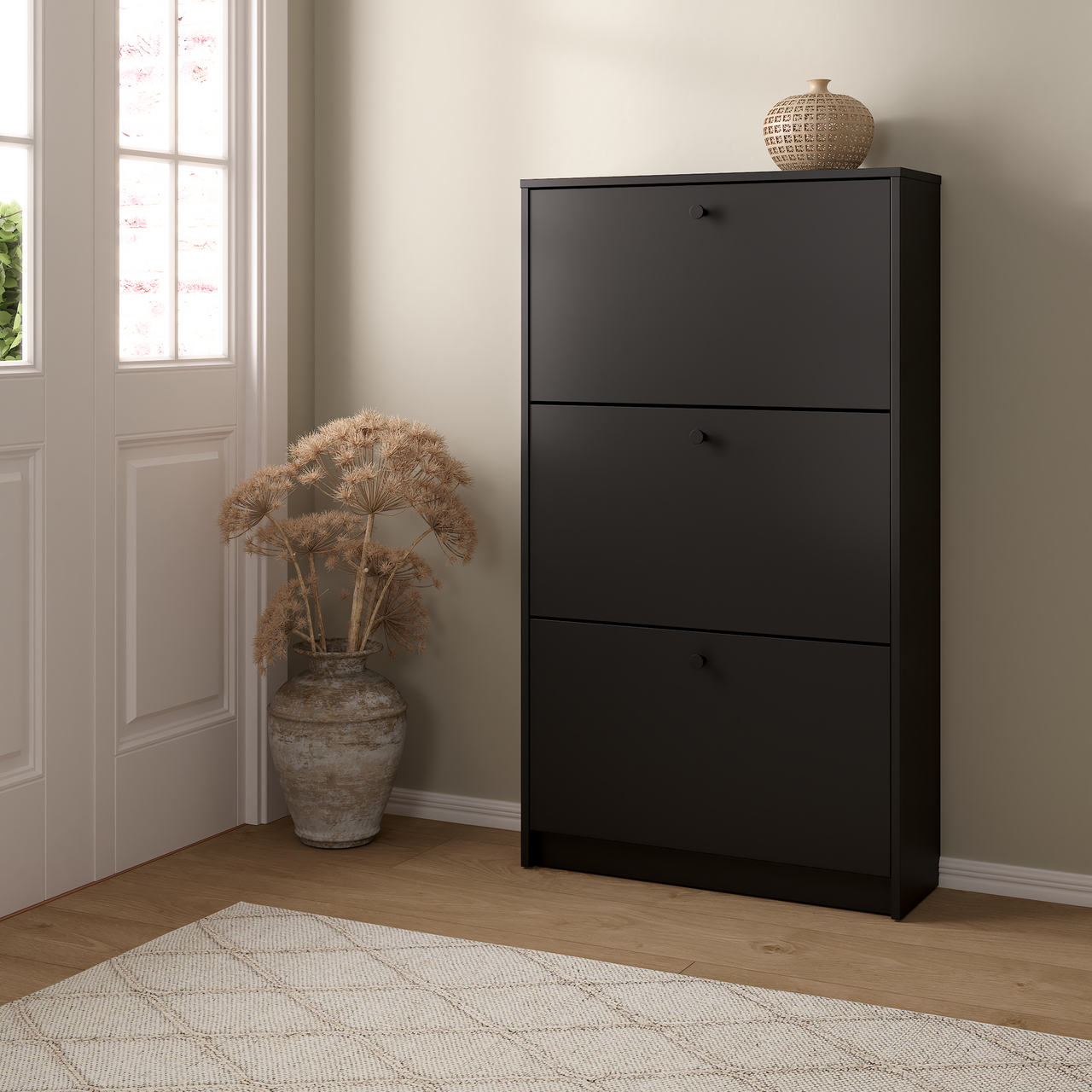 Lind fiora skoskap sort 3 dører 70x24x124