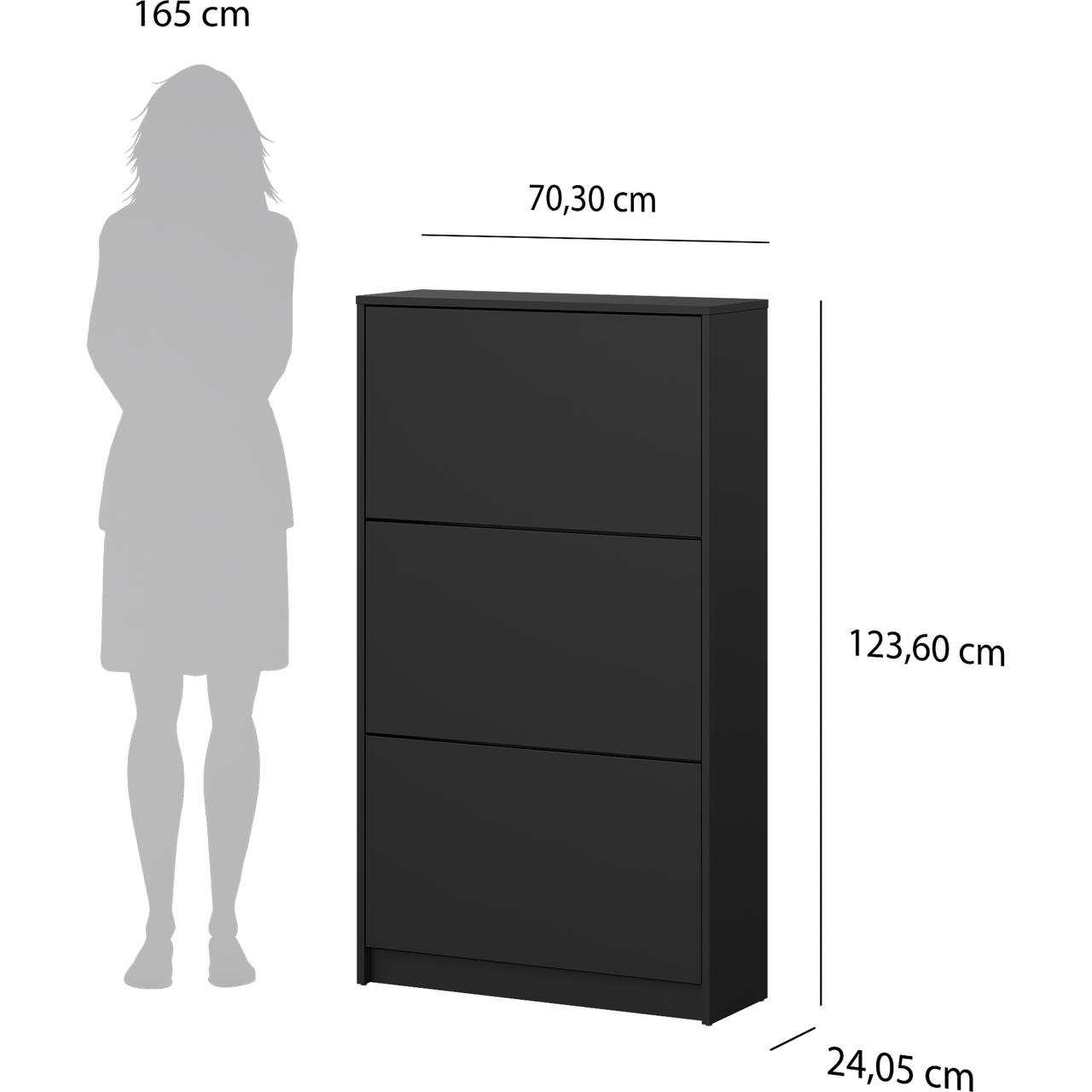 LIND FIORA SKOSKAP SORT 3 DØRER 70X24X124