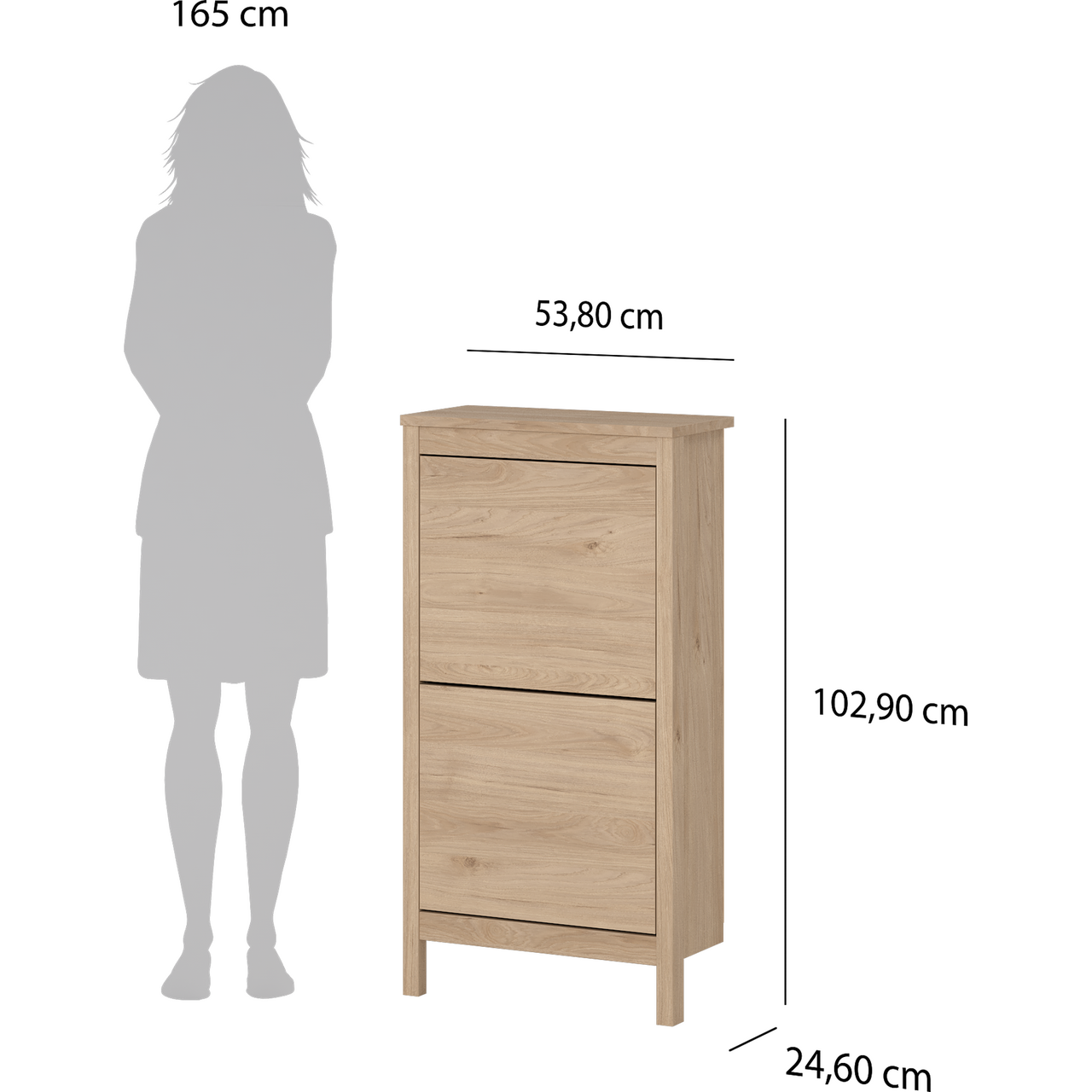 Leona skoskap fra Lind kombinerer en praktisk løsning med plass til opptil 8 par sko. Med fire nedfellbare dører får du en praktisk oppbevaring, samtidig som fottøyet holdes organisert og lett tilgjengelig.