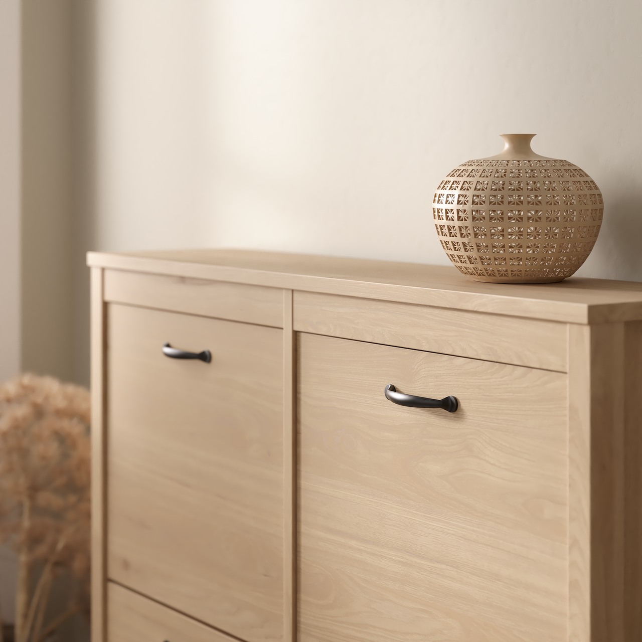 Med sin tidløse finish passer skapet inn i ethvert hjem, og du kan enkelt tilpasse uttrykket etter stil og interiør med valgfrie håndtak.