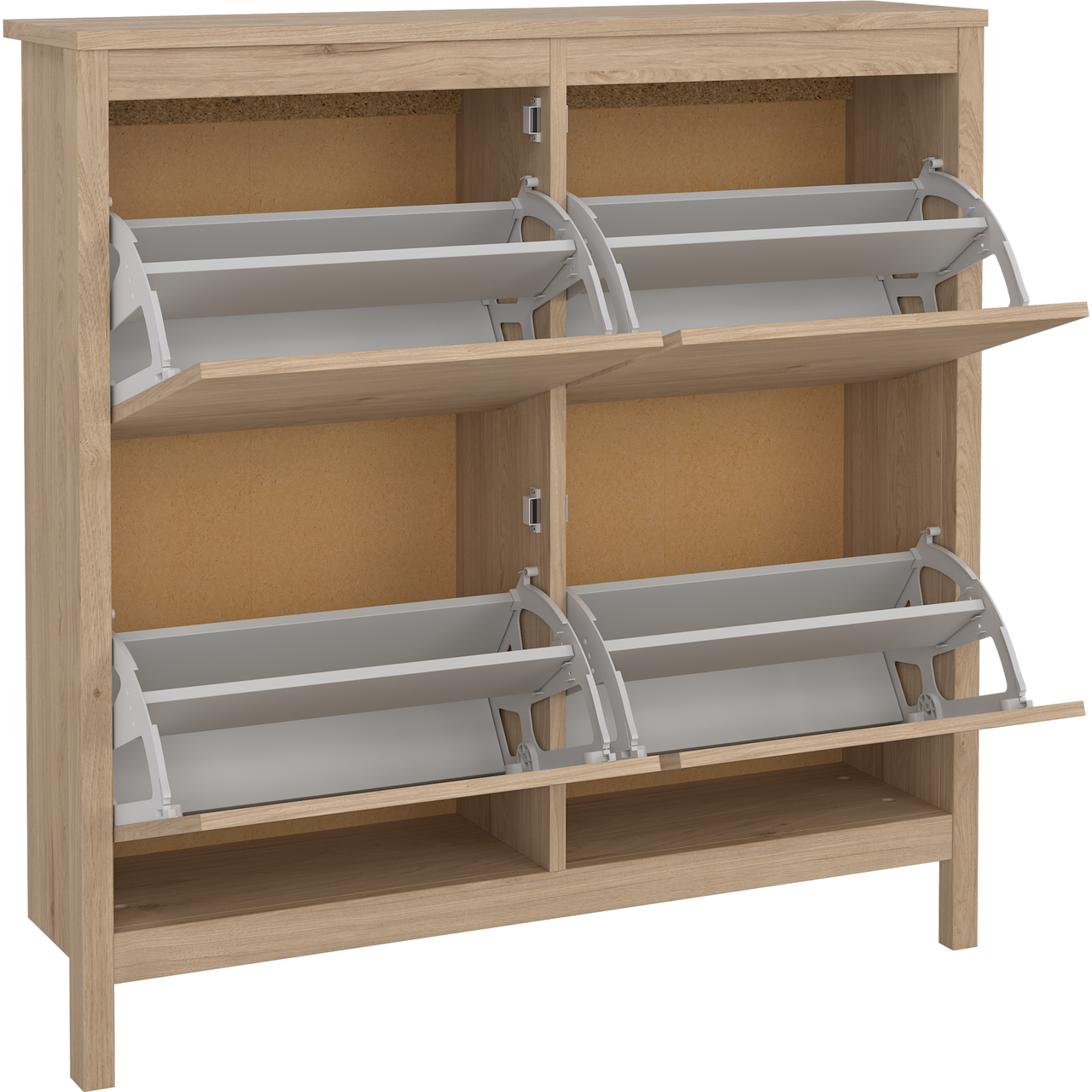 Leona skoskap fra Lind kombinerer en praktisk løsning med plass til opptil 16 par sko. Med fire nedfellbare dører får du en praktisk oppbevaring, samtidig som fottøyet holdes organisert og lett tilgjengelig.